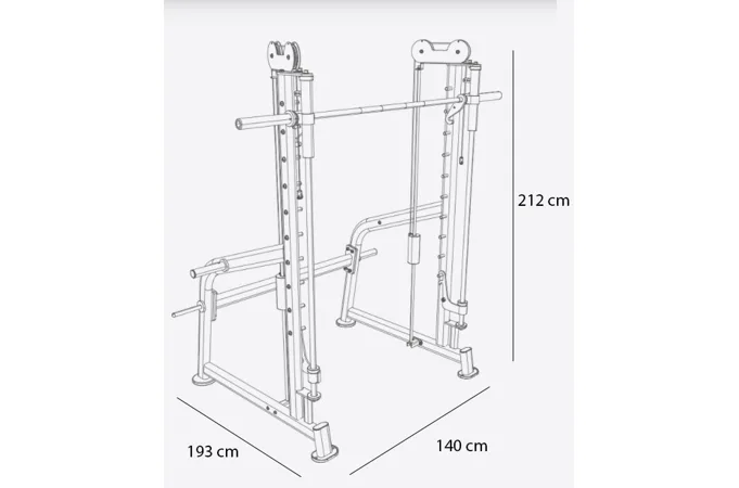 Multipress BH Fitness L350 Multipower je základ každého profesionálního fitness. Jedná se o kompaktní a masivní konstrukci, která vám pomůže doma či v plně komerčním prostředí maximálně a především zcela bezpečně protrénovat všechny základní svalové partie.Vertikální pohyb osy umožňuje provádět všechny komplexní cviky jako jsou dřepy, bench, tlaky na ramena atd.