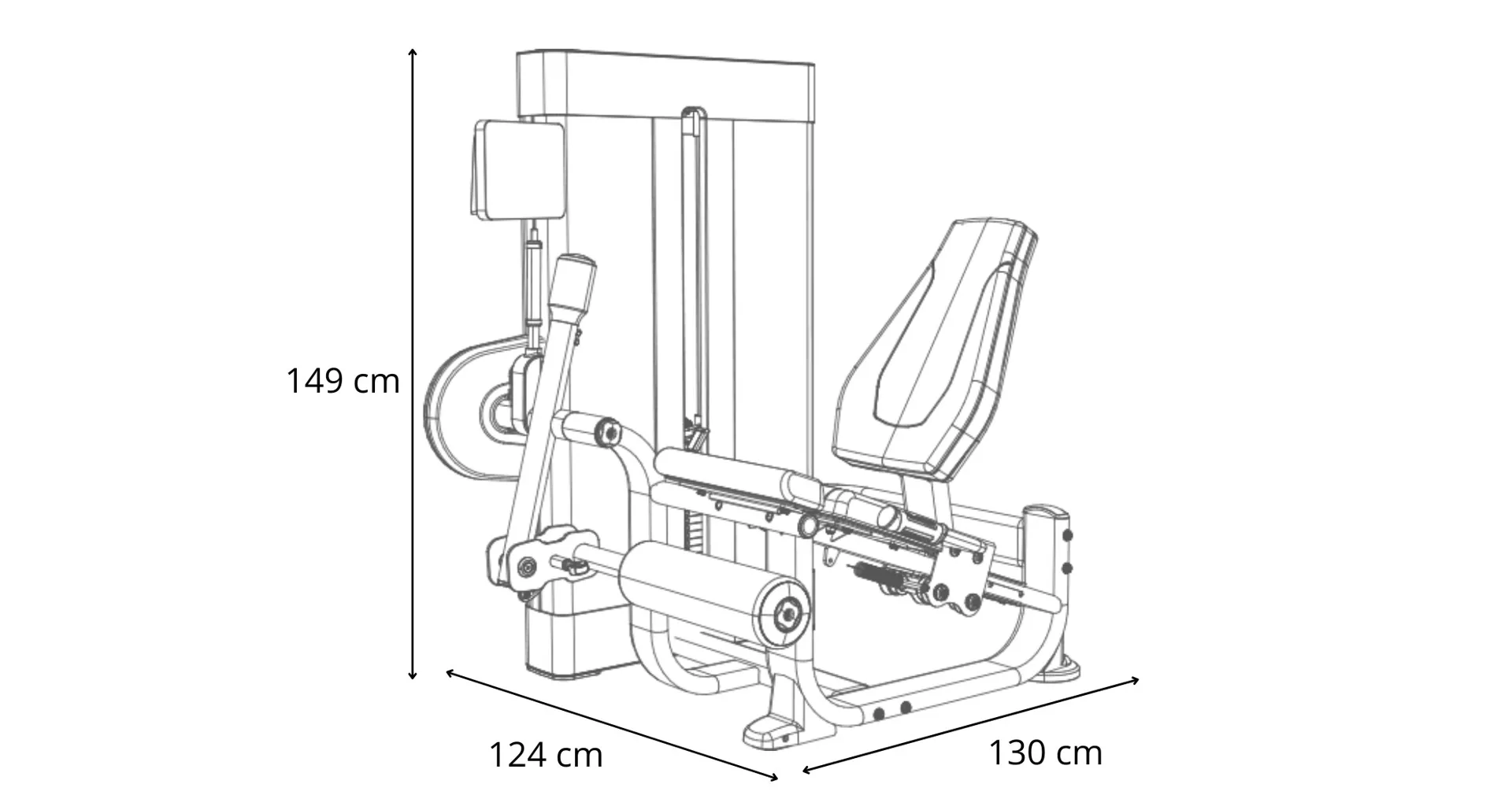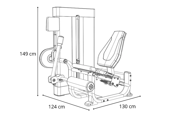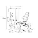 Posilovač stehen BH Fitness Movemia M010 předkopávání se rozkládá na půdorysu o rozměrech (d x š x v) 130 cm, 124 cm a 149 cm, nezabere vám tedy moc prostoru a stále zůstane dostatek místa i na další stroje.