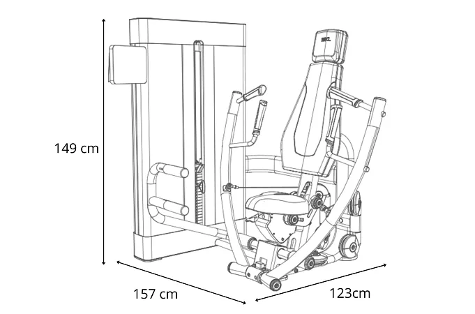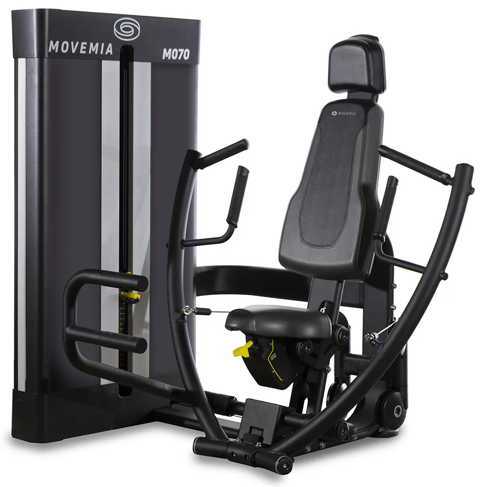 Posilovací stroj BH FITNESS Movemia M070 Seated Chest Press patří mezi plně profesionální jednoúčelové stroje, který slouží k intenzivnímu a bezpečnému posilování prsního svalstva pomocí tlaků v sedě - podobně jako u klasického bench pressu. Vyniká především svou robustní konstrukcí a díky použití kvalitních materiálů poskytuje velmi pohodlné cvičení.