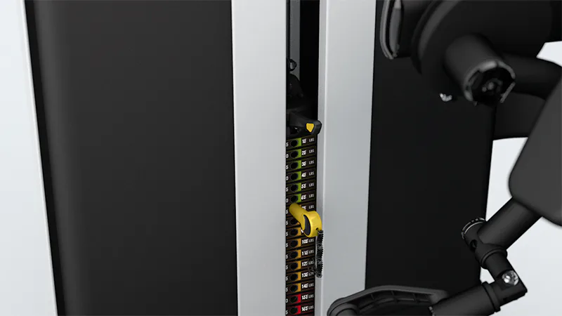 Pro pomoc při začátku a konci tréninku je stroj vybaven pedálem pro dopomoc zvednutí a položení závaží