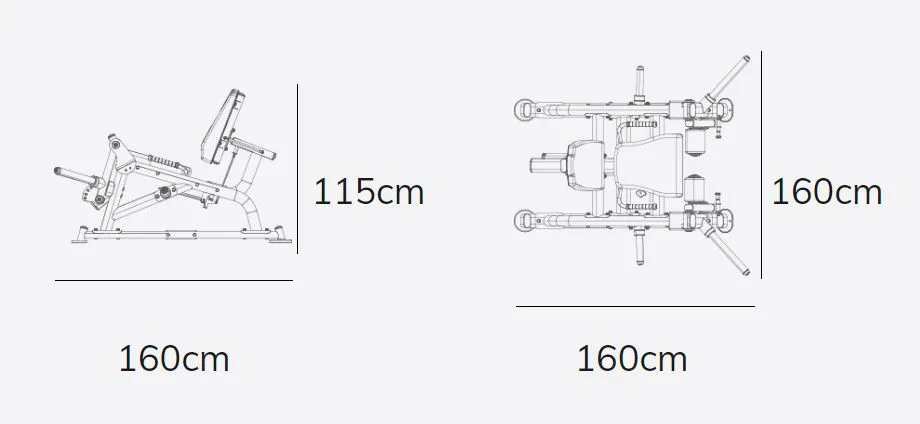 Posilovač stehen BH Fitness PL010 Leg Extension se rozkládá na půdorysu o rozměrech (d x š x v) 160 cm, 160 cm a 115 cm, nezabere vám tedy moc prostoru a stále zůstane dostatek místa i na další stroje.