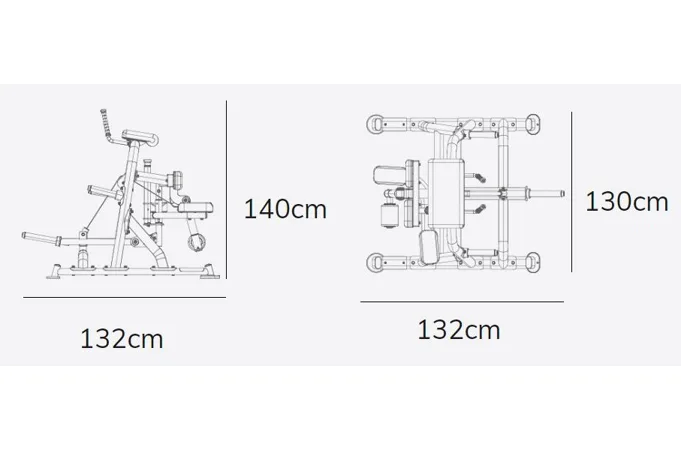 Posilovač stehen PL170 se rozkládá na malém půdorysu o rozměrech (d x š x v) 143 cm, 132 cm a 140 cm, nezabere vám tedy moc prostoru a stále zůstane dostatek místa i na další stroje.