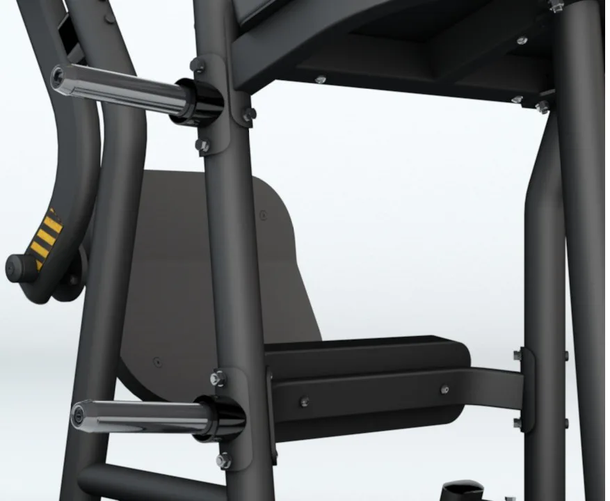 Na nakládací trny lze naložit až 200 kg olympijských kotoučů, odporových gum nebo kombinací obou zátěží. Na tomto stroji perfektně procvičíte kompletně stehenní svaly a hýždě na různé způsoby. Jde zkrátka o multifunkční stroj!