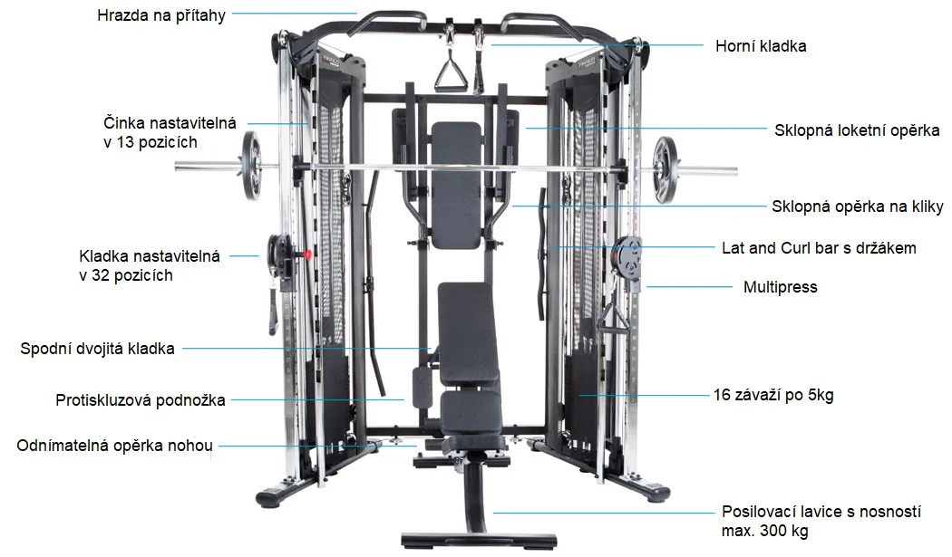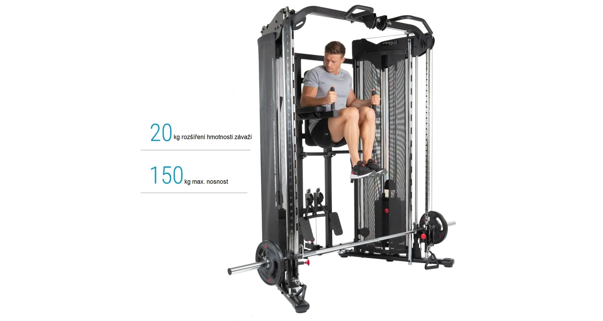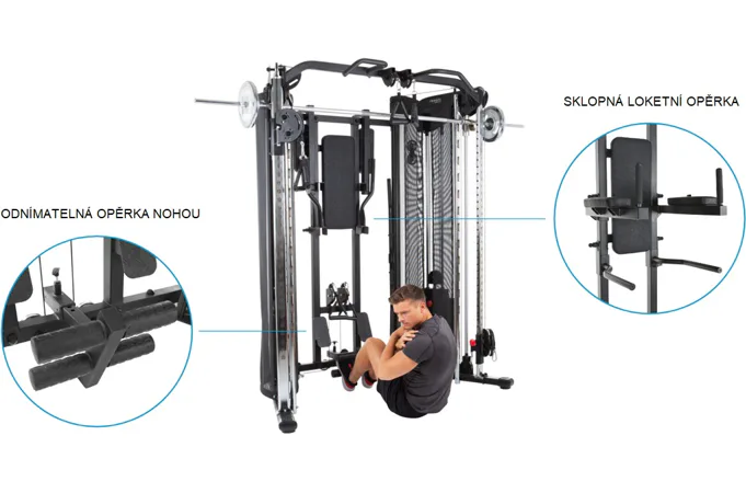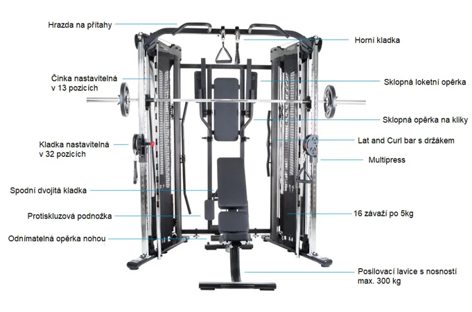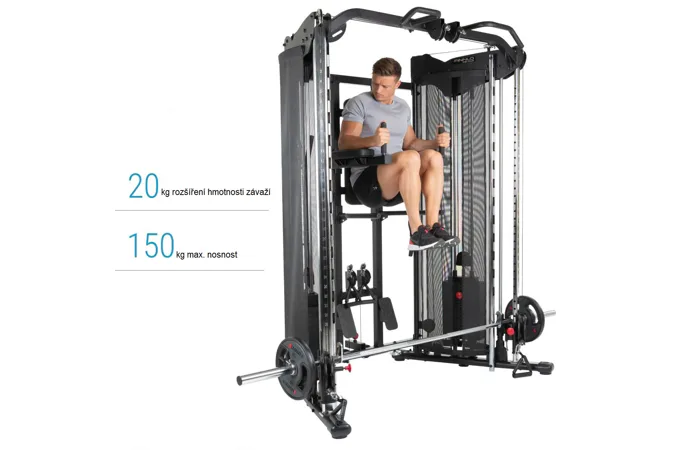 Nosnost posilovací stanice je 150 kg.
