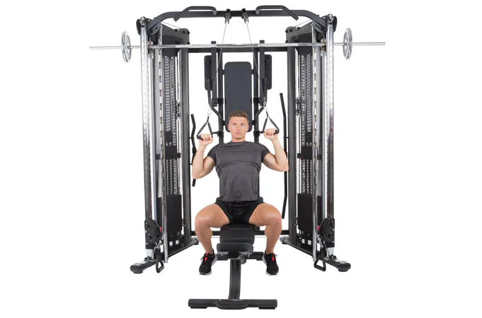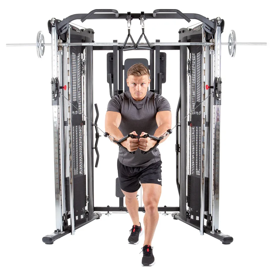 Finnlo Maximum Autark 10.0 je skvělá domácí posilovna, která cílí na všechny svalové partie a díky ní efektivně a rychle buduje postavu vašich snů a podporuje především aktivní kondici přímo u vás doma! Tato posilovací stanice uspokojí i ty nejnáročnější uživatele. Je vhodná pro náročný domácí trénink, ale i do klubových fitness center, wellness, apod..Konstrukce nabízí nespočet stanovišť od integrované multiúchopové hrazdy, po multipressový stojan s olymp. osou., nastavitelné kladky pro trénink zad, paží, či prsních svalů a řadu posilovacích adaptérů pro maximální procítění vašich svalů.