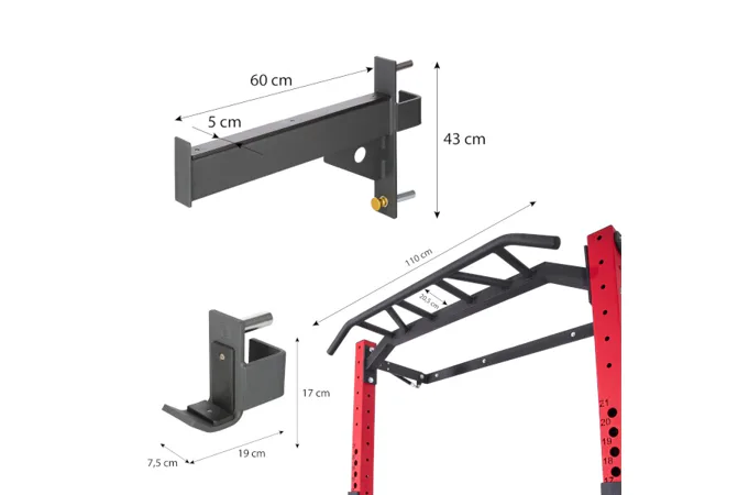 Stojan má multifunkčnú hrazdu, ktorá vám vďaka rôznym možnostiam úchopu umožní rozvíjať chrbtové, ramenné a hrudné svaly. Príťahy sú jedným z najlepších cvikov pre hornú časť tela, pretože zapájajú viacero svalových skupín a zlepšujú pohyblivosť kĺbov. Ak si chcete toto cvičenie uľahčiť, stačí použiť špeciálne odporové gumy. Na KLT23 nájdete aj dva háky na os, ktoré môžete upevniť v akejkoľvek výške.