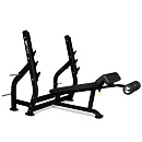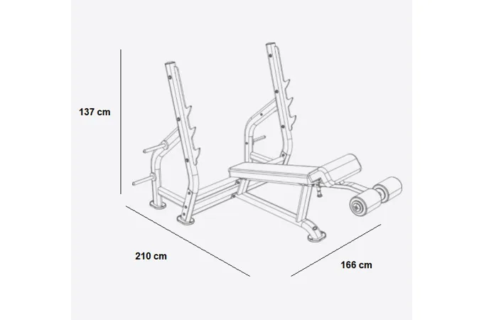 Obouruční osu lze odložit do tří různých výšek. Dále lavice disponuje nastavitelnou opěrkou pro zafixování nohou, a odkládacími trny na olympijské kotouče. Osa a kotouče není součástí dodávky, ale není problém ji dokoupit dle vašich individuálních potřeb.