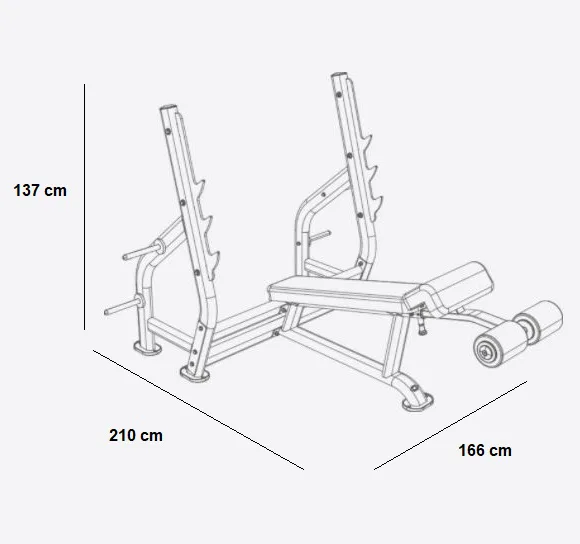 Tento stojan s šikmou lavicí je varianta pro cvičení bench pressu a je zaměřena především na posilování prsních svalů (s důrazem na spodní část prsou). Konstrukce je určena pro silový trénink v domácím, ale i plně komerčním prostředí, jako jsou hotely, wellness, fitcentra atd..