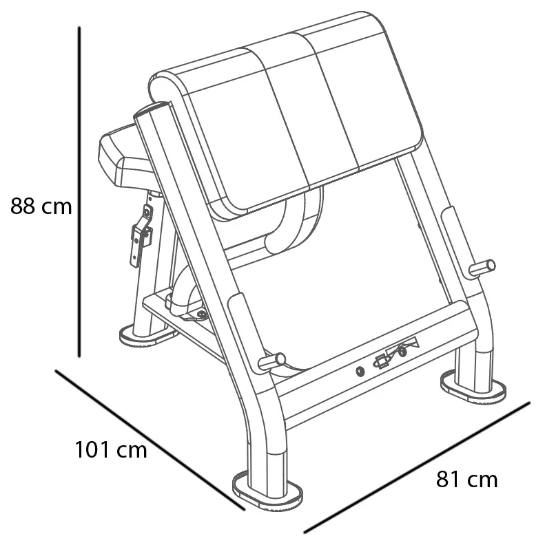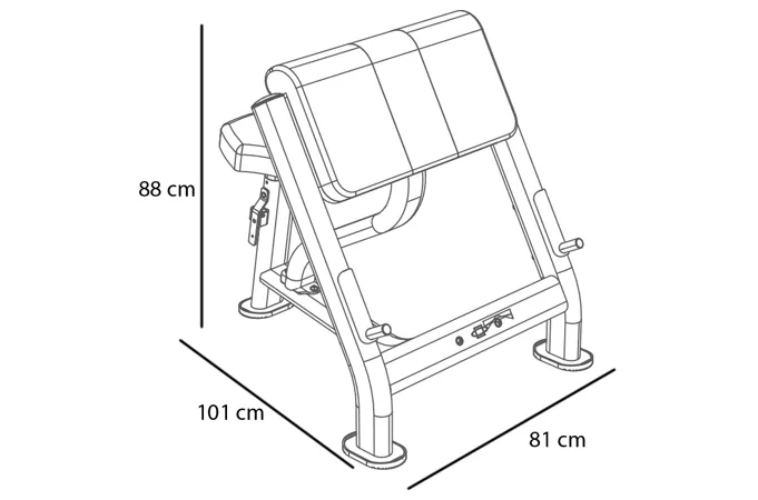 Posilovací lavice L830BB se rozkládá na půdorysu o rozměrech (d x š x v) 101 cm, 81 cm a 88 cm, nezabere vám tedy moc prostoru a stále zůstane dostatek místa i na další stroje.