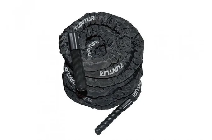 Posilňovacie lano Battle Rope TUNTURI Pro v obale je skvelý doplnok na rozvoj explozívnej sily, ale aj vytrvalosti. Vďaka typickému pohybu sa dokonale spevnia celé paže, ale aj ramená, časť prsných svalov a horná časť chrbta. Posilňovacie laná je možné používať ako vonkajšiu (outdoor) aj halovú (indoor) pomôcku. Posilňovacie lano Battle Rope TUNTURI je vyrobené z odolného polyesteru, ktorý je v nylonovom návleku (obale). Úchopy lana sú tvorené z PVC. Tieto materiály zaisťujú dlhú životnosť lana, rovnako ako vysokú odolnosť. Využitie posilňovacích lán nájdeme v mnohých športoch a športových disciplínach, veľmi rozšírené sú napríklad v bojových športoch, v ktorých ide nielen o výbušnosť a vytrvalosť, ale aj v prostred crossfitu.