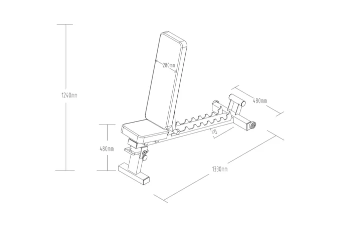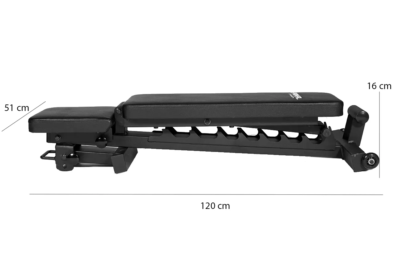 Posilovací lavice se rozkládá na půdorysu o rozměrech (d x š x v) 133 x 51 x 48 - 124 cm, nezabere vám tedy moc prostoru a stále zůstane dostatek místa i na další stroje. Jak již bylo řečeno, tak tento model lze složit do minimalistických rozměrů, které Vám umožní lavici skvěle uskladnit i v malém prostoru.
