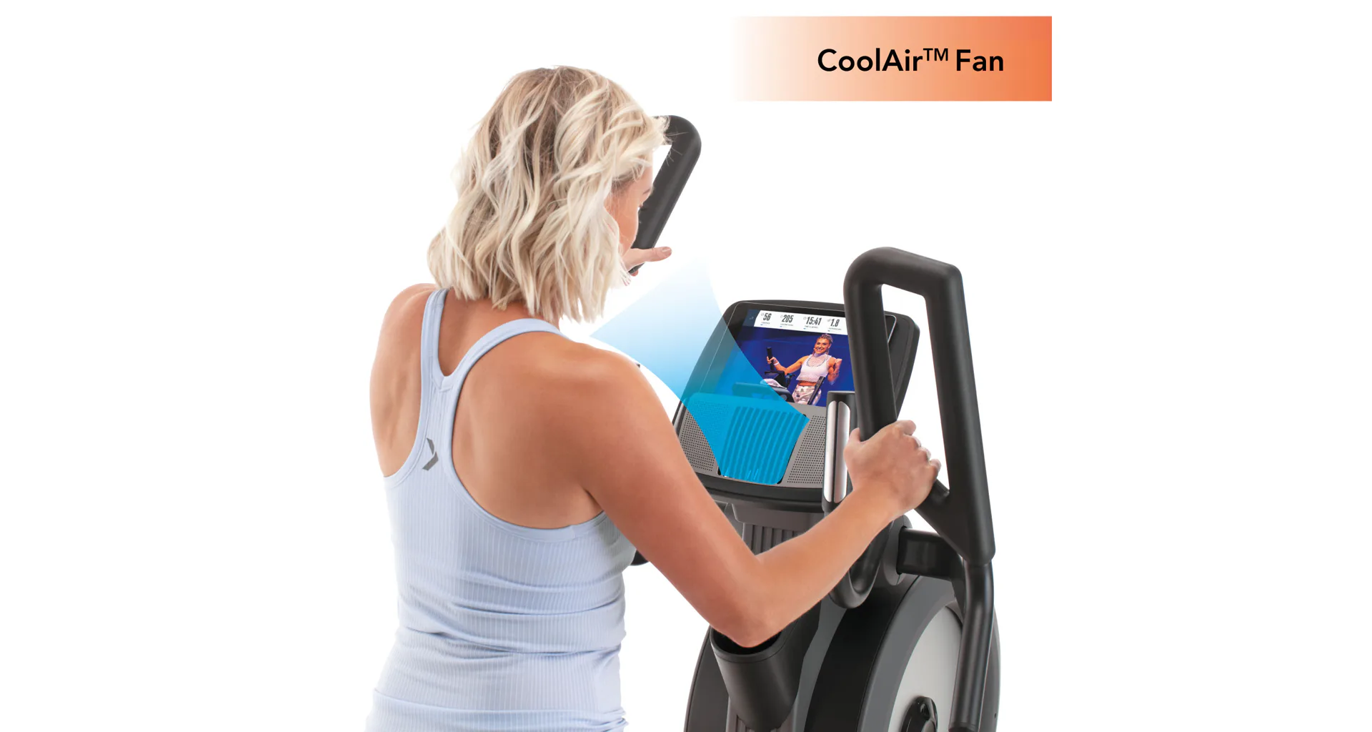 Své tréninkové výsledky můžete sledovat na 6" displeji s MP3 připojením a se zabudovanými reproduktory, které vám umožní sledování filmů a poslech hudby pro maximální komfort při tréninku. Komfort a osvěžení při dlouhém a pravidelném tréninku vám poskytne integrovaný ventilátor.
