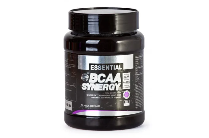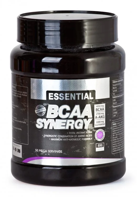Essential BCAA Synergy obsahuje esenciálne aminokyseliny BCAA, teda L-valín, L-izoleucín, L-leucín, ktoré tvoria základnú zložku bielkovín dôležitých na rast svalovej hmoty. Produkt je doplnený aj o glutamín, čo je neesenciálna proteínová aminokyselina, ktorá tvorí až 60 % obsahu aminokyselín svalových buniek. Vedecké pokusy dokázali, že pri úmernom zásobení organizmu glutamínom je možno uspokojiť dopyt svalov.