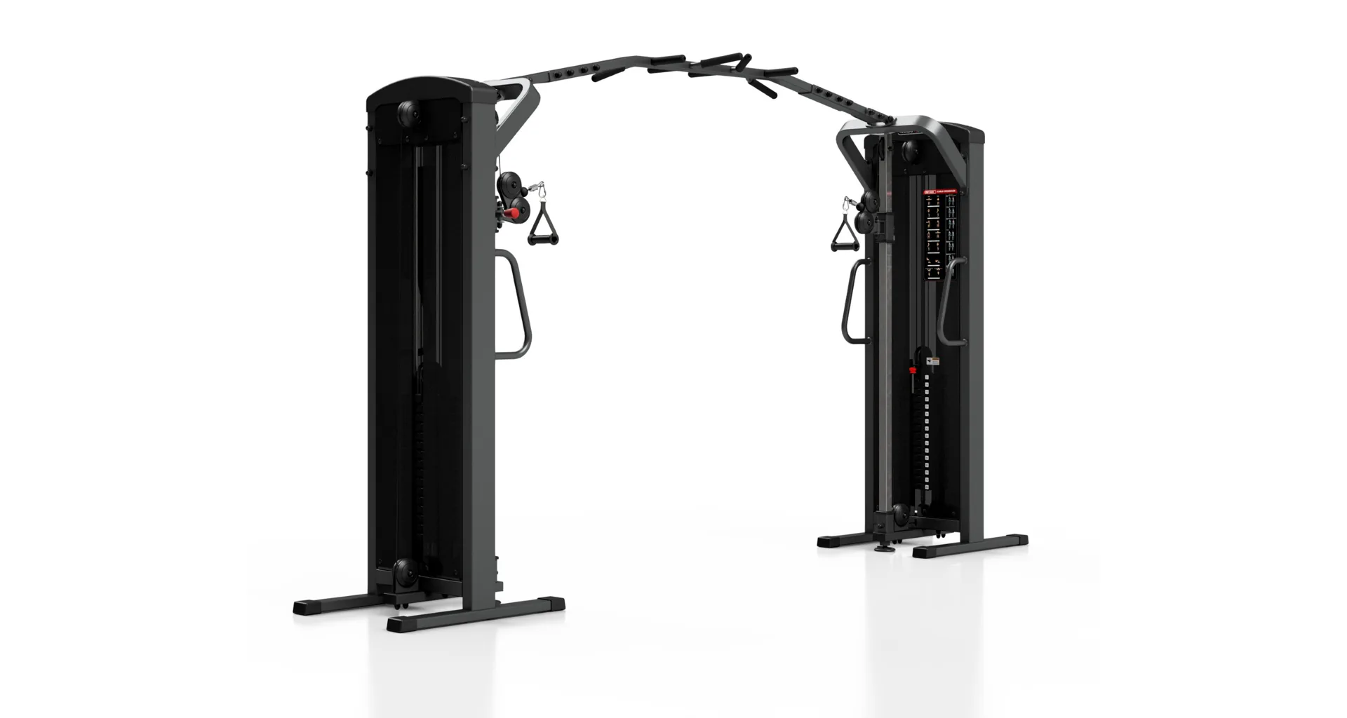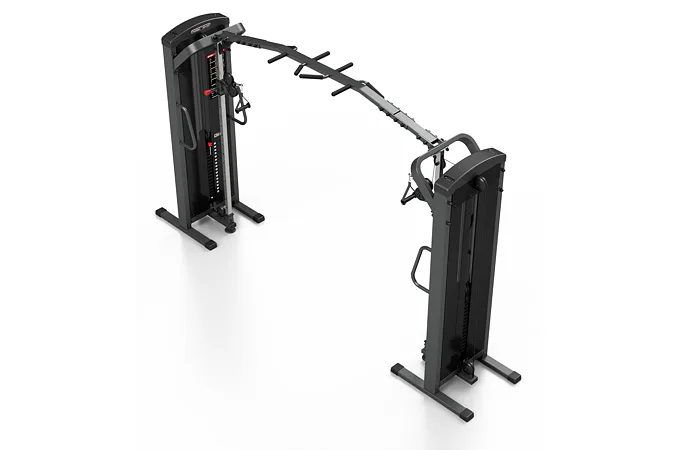 Kladky sú výškovo nastaviteľné a umožňujú až 16 rôznych polôh na prispôsobenie tréningu podľa potrieb užívateľa. Vďaka posuvu na klznom puzdre s pružinovým kolíkom, označeným červenou farbou, je prispôsobenie jednoduché a rýchle. Multiúchopová hrazda na centrálnom nosníku ponúka 8 rôznych úchytov, ktoré sú potiahnuté silnou penou pre pohodlný a bezpečný grip.