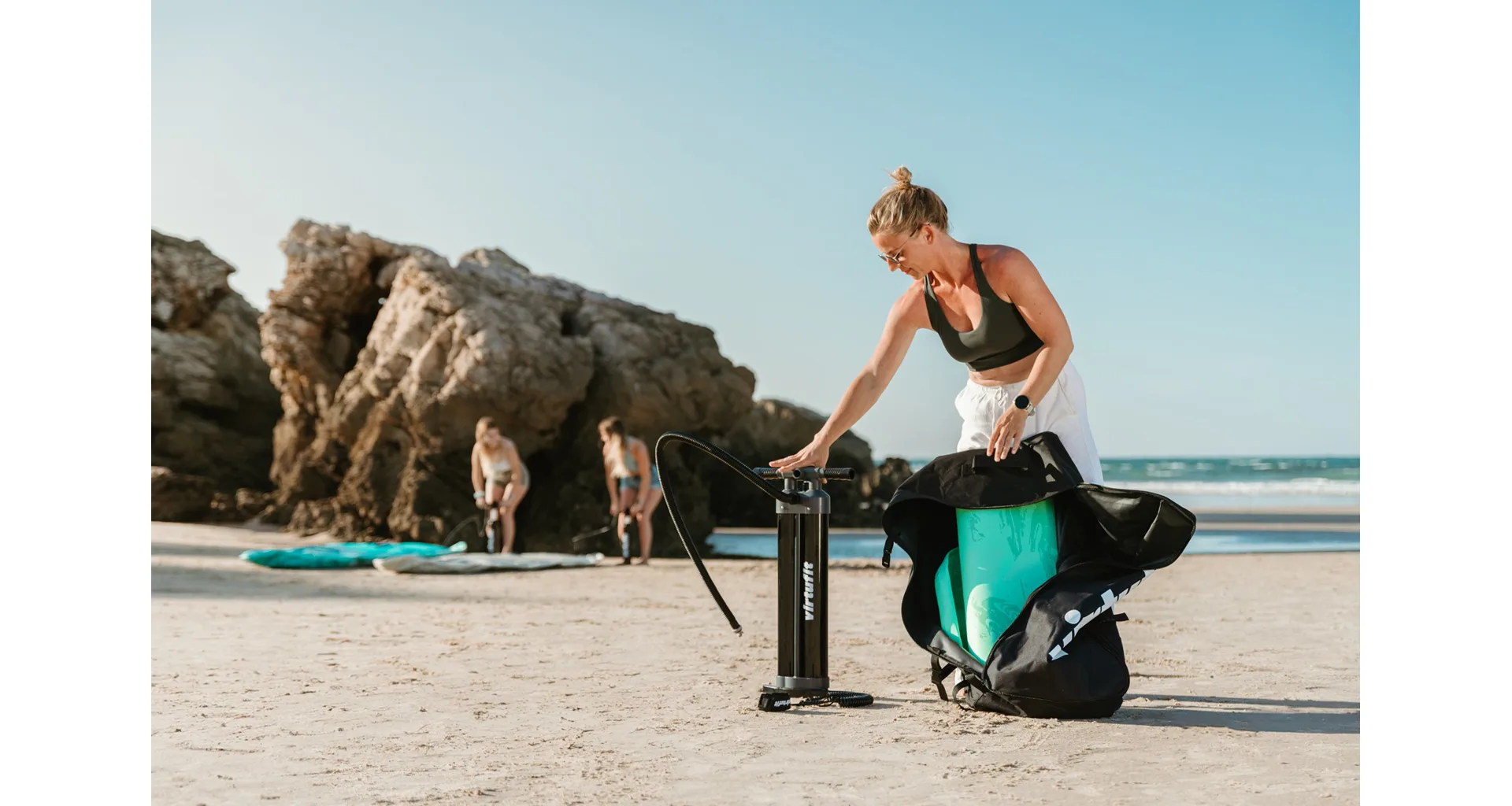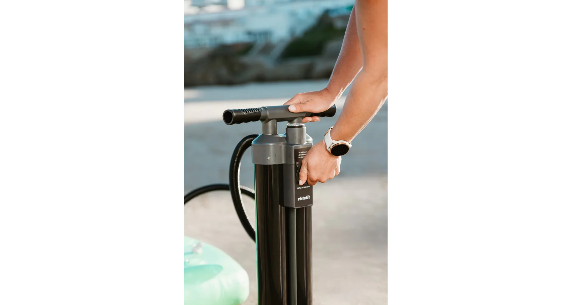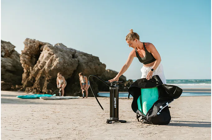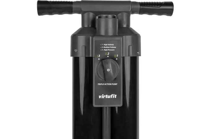 Pumpička pre paddleboard VIRTUFIT Triple Action je výkonná pumpa, ktorá uľahčí nafukovanie paddleboardov, kajakov, člnov a ďalších nafukovacích produktov. Vďaka trom režimom pumpovania umožňuje rýchle nafúknutie s minimálnou námahou – prepínate medzi dvojčinným a jednočinným režimom podľa požadovaného tlaku.
