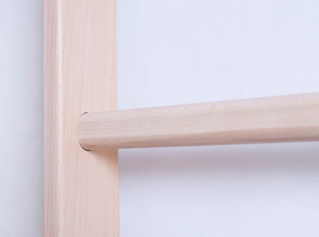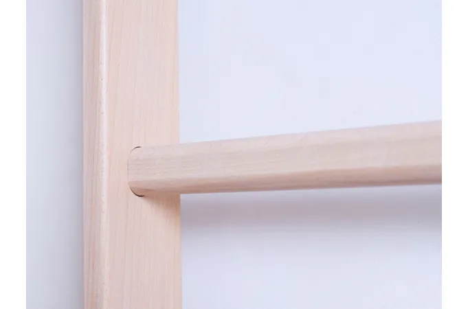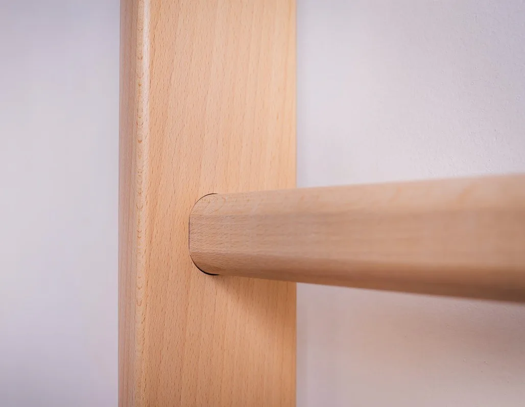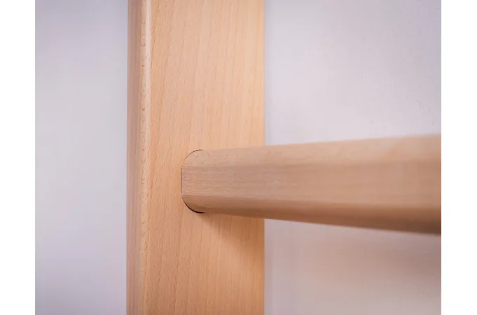 Základným materiálom používaným pri výrobe rebrín je masívne prírodné bukové drevo, ktoré prešlo dôkladným spracovaním a brúsením. Oválne priečky s profilom 30 x 40 mm poskytujú dokonalý úchop. Drevo je ručne napustené olejom a nehrozí tak lúpanie laku.