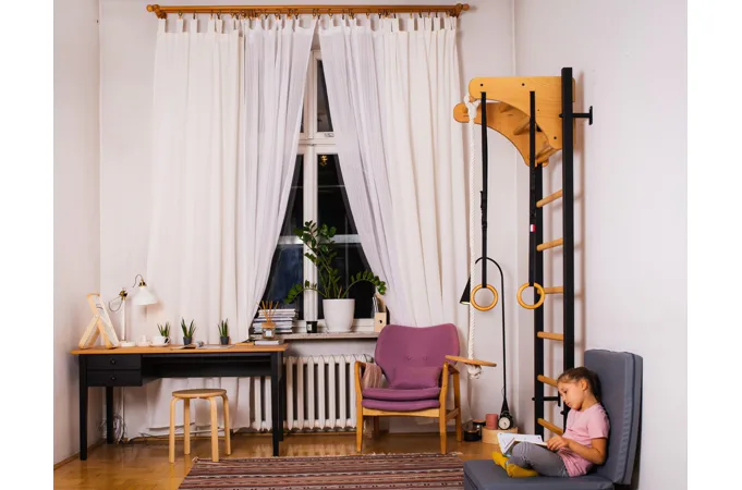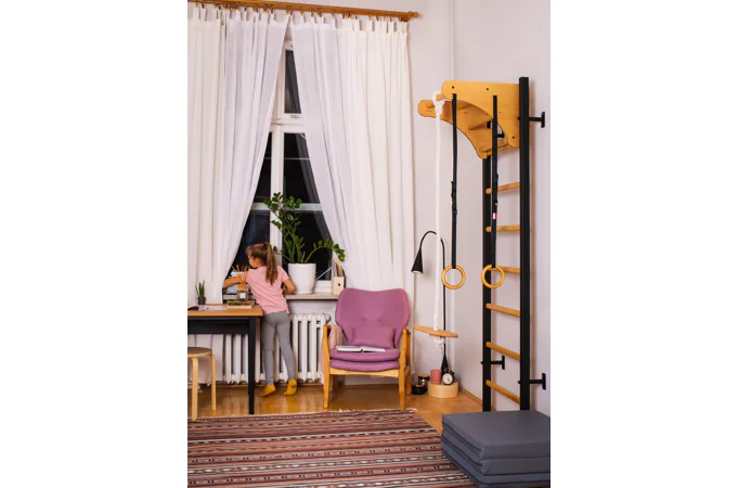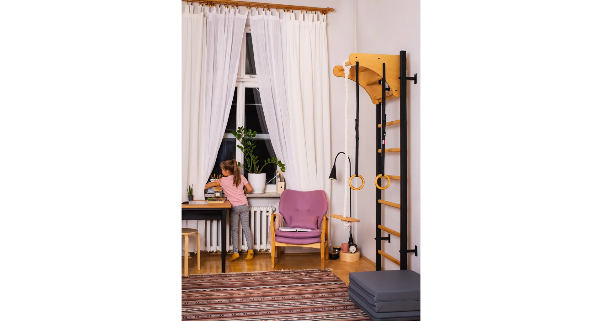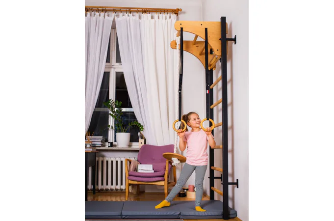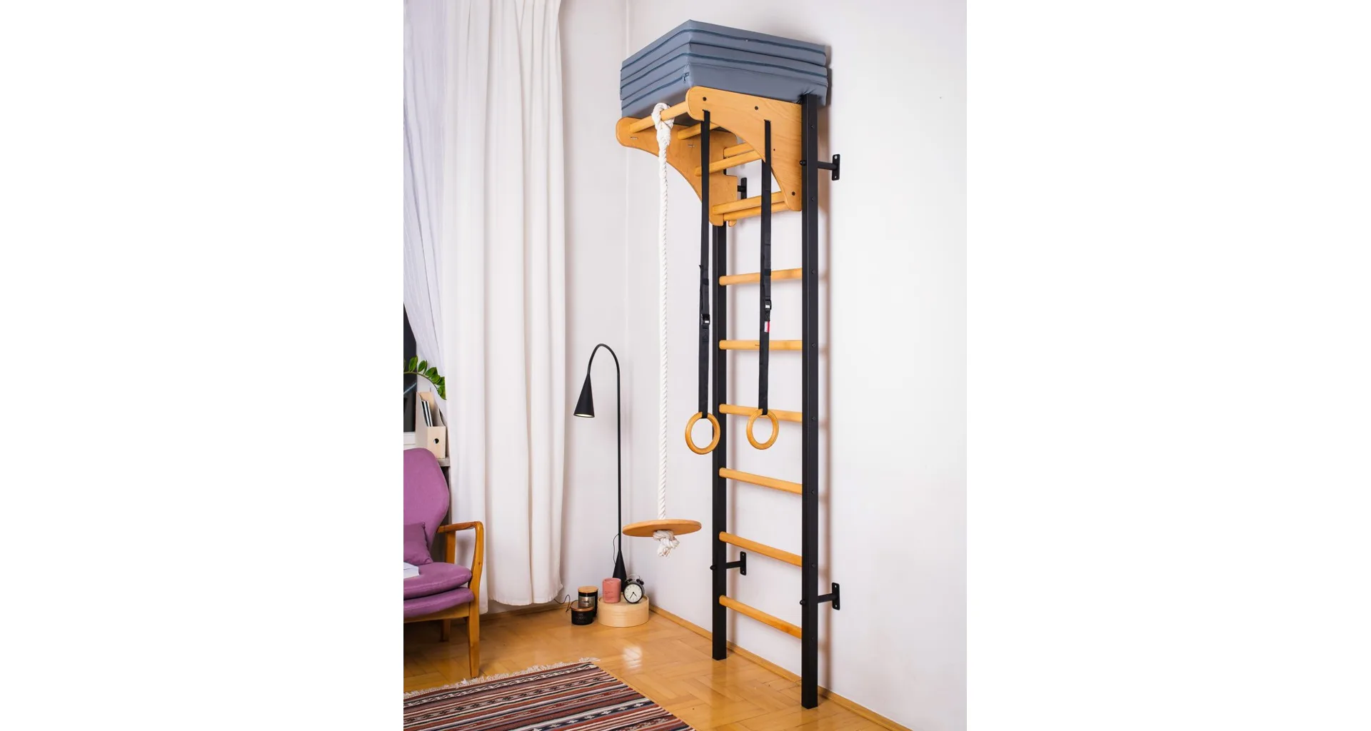 Vyobrazené komponenty nie sú súčasťou objednávky, ale je možné si ich dokúpiť. Jedná sa o hrazdu, gymnastické kruhy a lano s hojdačkou.