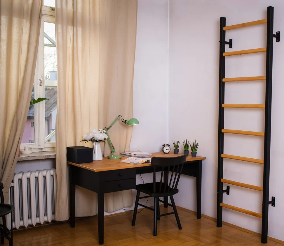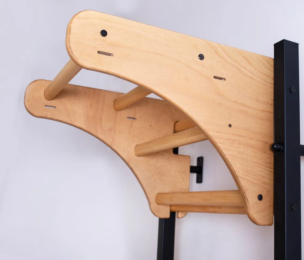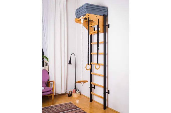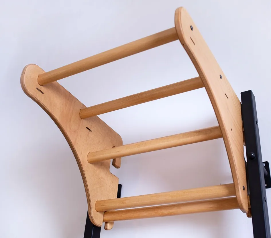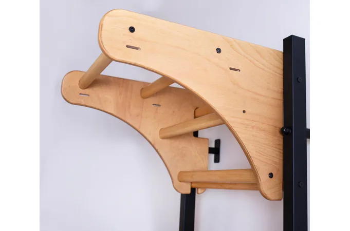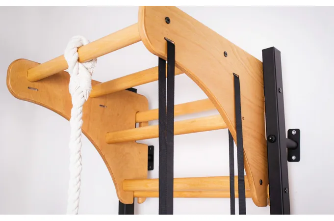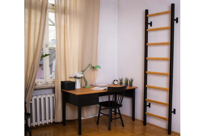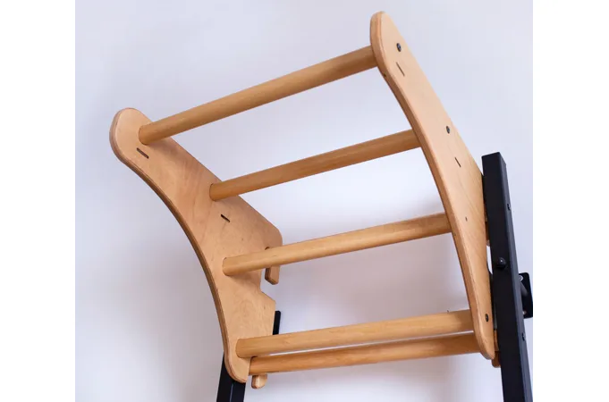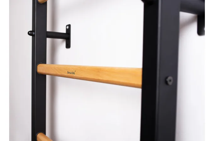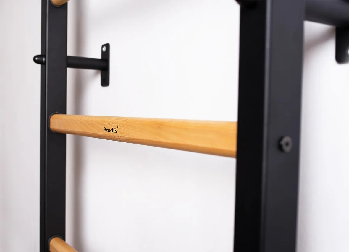 Konštrukcia je vyrobená z odolného kovu a priečky z bukového dreva. Oválne priečky s profilom 30 x 40 mm poskytujú dokonalý úchop. Drevo je ručne napustené olejom a nehrozí tak lúpanie laku. Rebriny sú nenáročné na priestor a zmestia sa do akejkoľvek miestnosti.