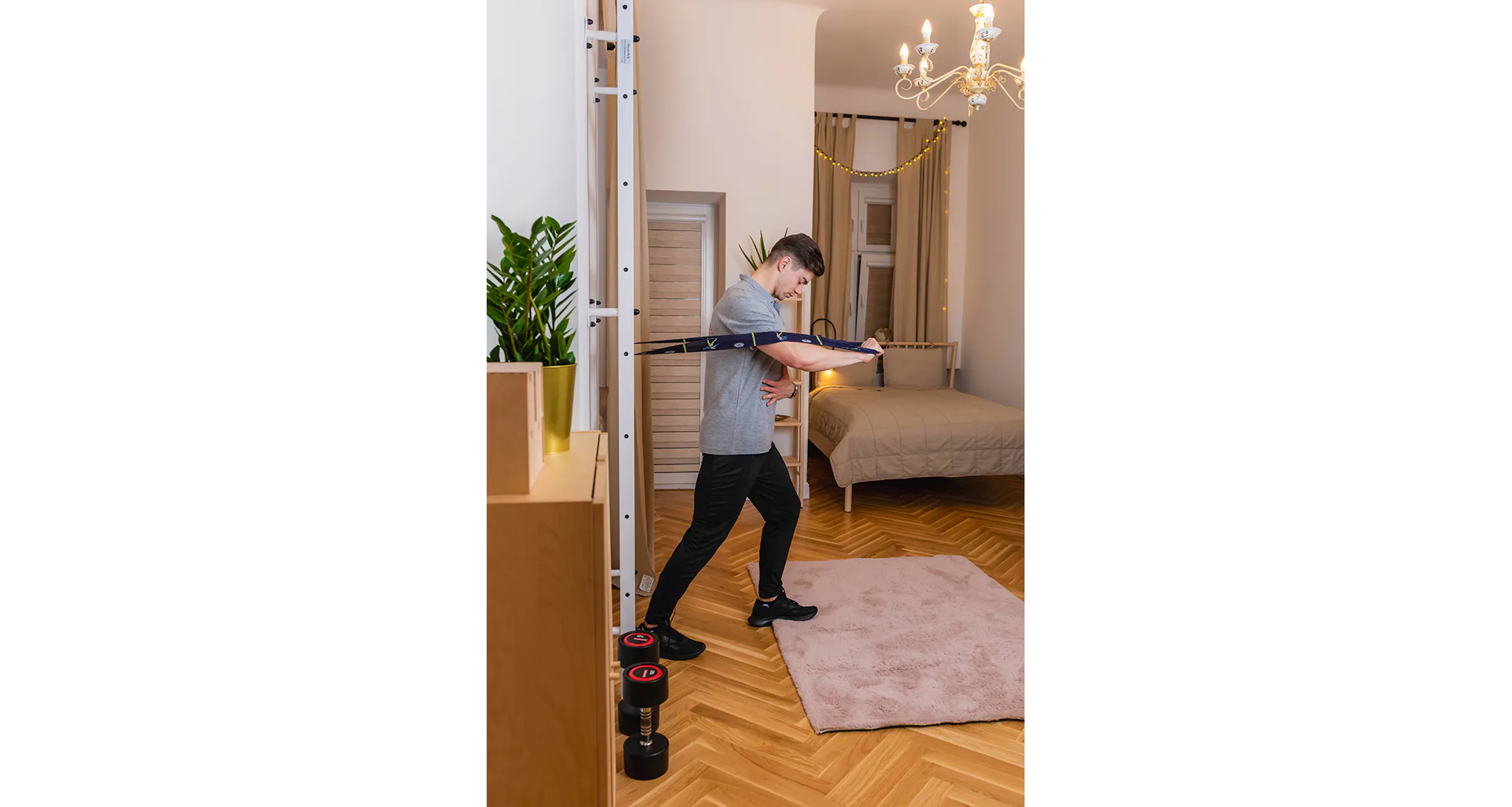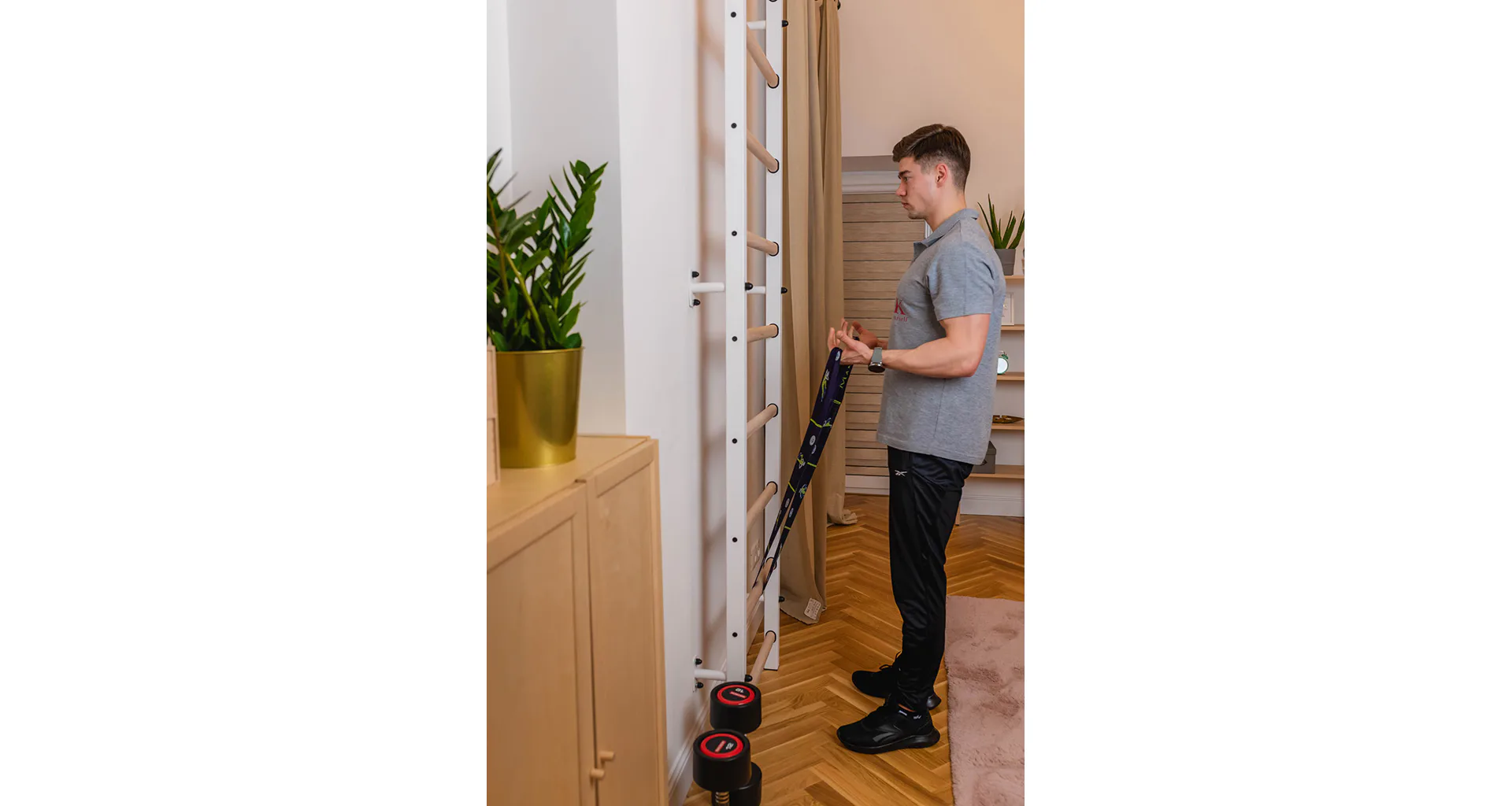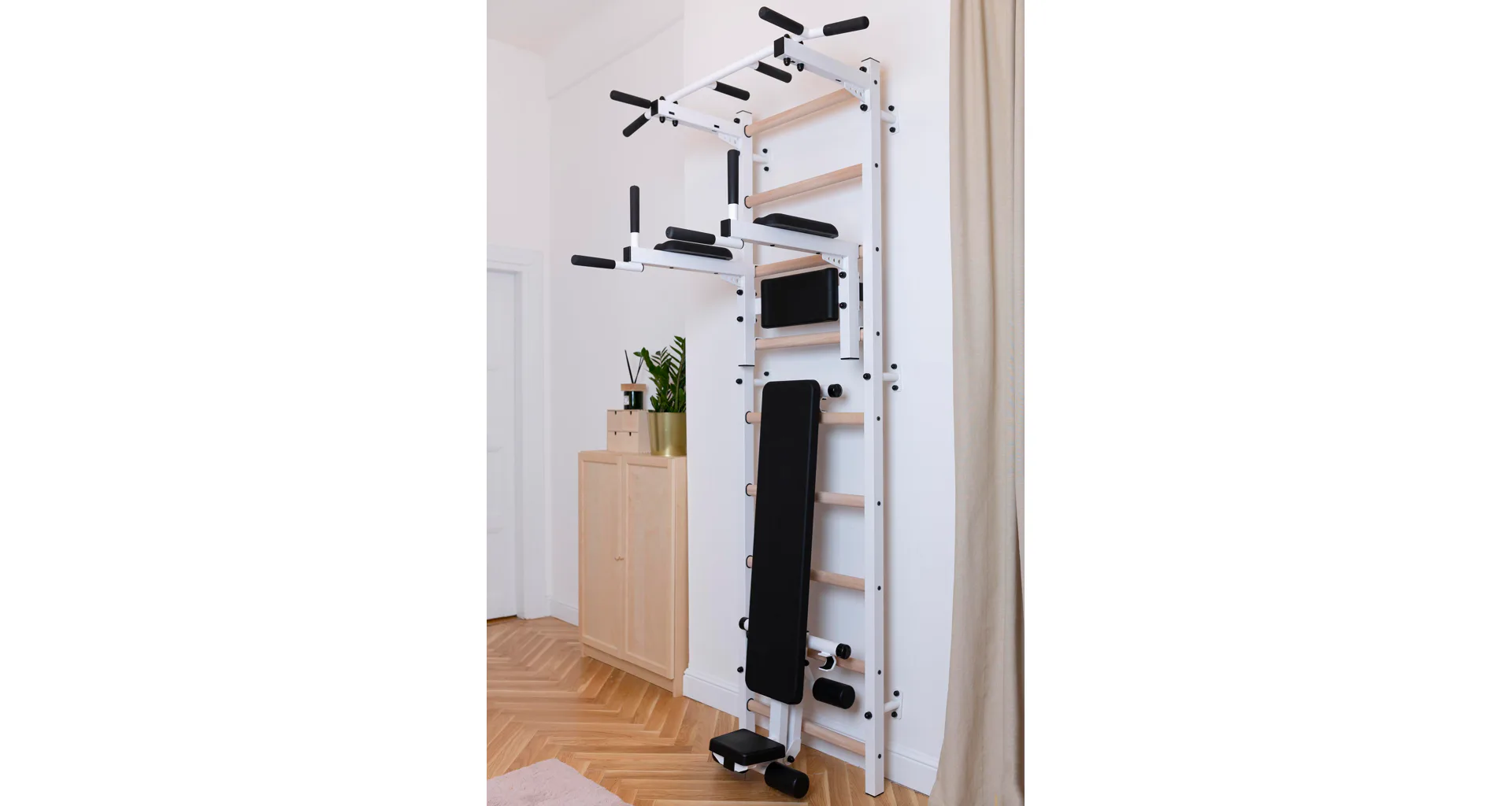 Konštrukcia je vyrobená z odolného kovu a priečky z bukového dreva. Oválne priečky s profilom 30 x 40 mm poskytujú dokonalý úchop. Drevo je ručne napustené olejom a nehrozí tak lúpanie laku. Rebriny sú nenáročné na priestor a zmestia sa do akejkoľvek miestnosti.