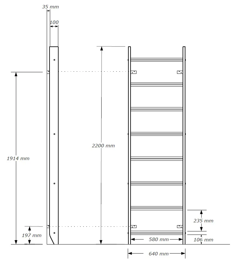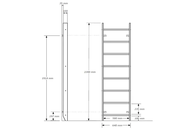 Rebriny sú nenáročné na priestor a zmestia sa do akejkoľvek detskej izby. Rozmery sú (š x v) 67 x 220 cm a potrebný priestor na inštaláciu je minimálne 230 cm.
