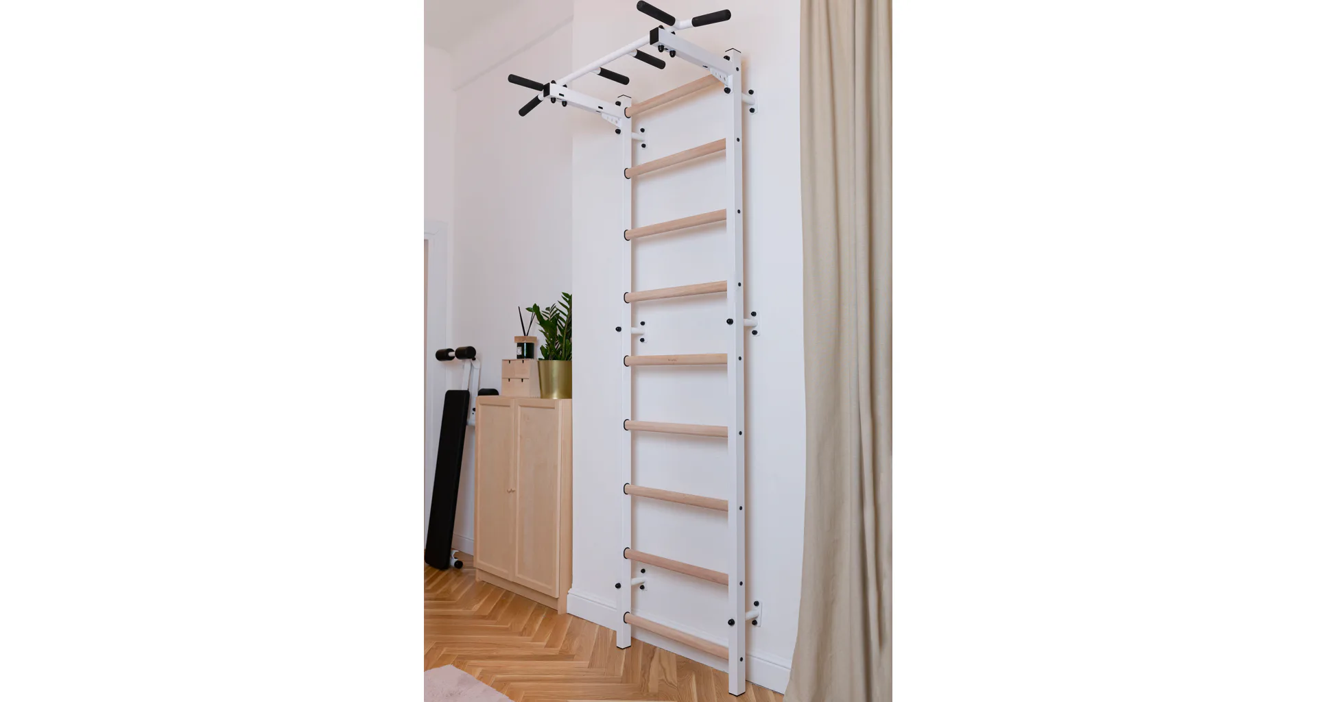 Kovová konštrukcia rebrín je vyrobená z profilu 50 x 40 mm s hrúbkou 2 mm. Oválne priečky z bukového dreva s profilom 30 x 40 mm poskytujú dokonalý úchop. Drevo je ručne napustené olejom a nehrozí tak lúpanie laku. Hrazda s priemerom 27,2 mm s protišmykovými rukoväťami ponúka celkom šesť rôznych úchopov.