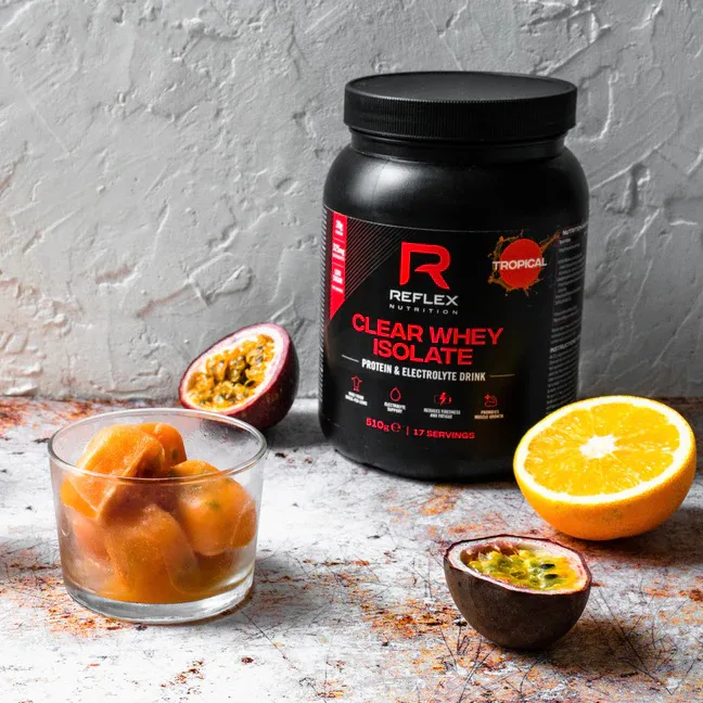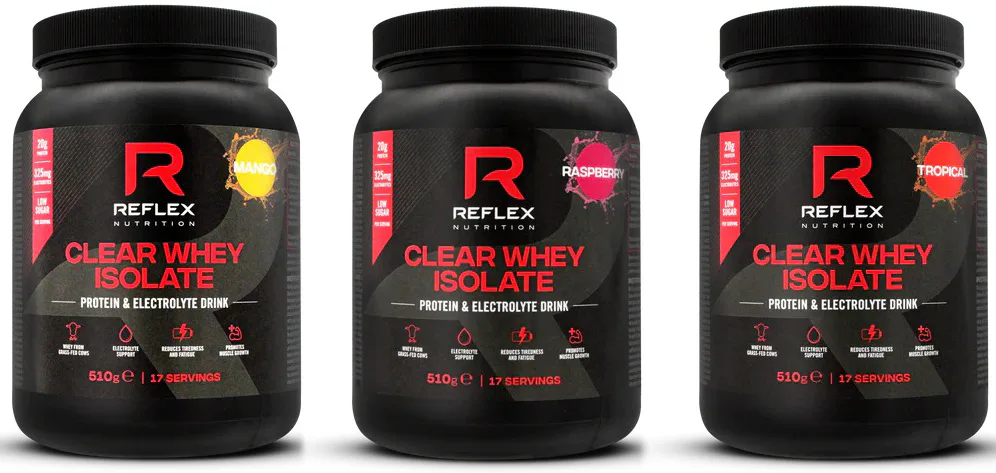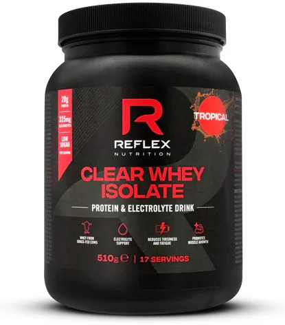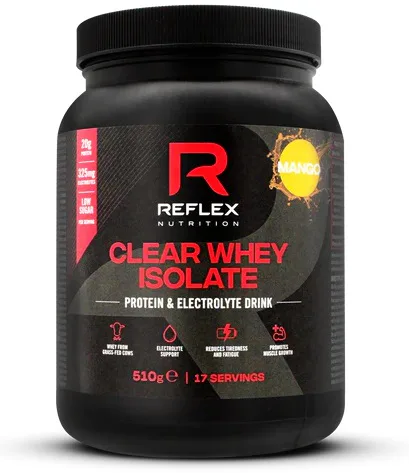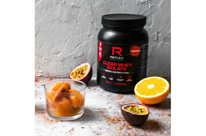 Proteínový drink s elektrolytmi v osviežujúcej ovocnej forme! REFLEX Clear Whey sa mieša s vodou a je určený na osvieženie a regeneráciu svalovej hmoty. Pokiaľ chcete doplniť dennú dávku proteínu, ale nechcete klasický proteínový "milkshake", je pre vás Clear Whey ideálny! Clear Whey je dostupný v troch lahodných ovocných príchutiach – mango, tropical a malina.