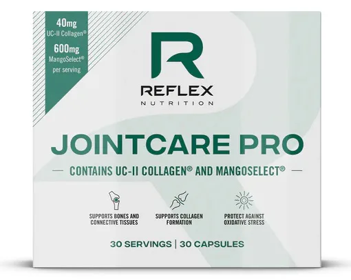 REFLEX Jointcare PRO je účinný komplex signálnych biomolekúl UC-II a bioaktívnych xantónov Mangoselect®. Nejedná sa teda o základné živiny, ako je tomu u väčšiny produktov na súčasnom trhu (chondroitín, MSM, glukosamín atď.), ale o sofistikovanú zmes bioaktívnych spúšťačov, preverenú klinickými štúdiami.