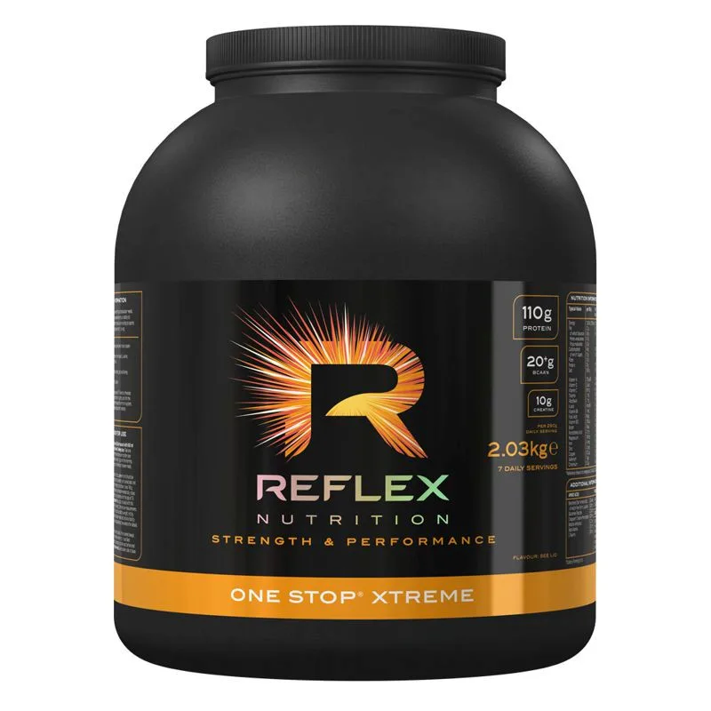 One Stop XTREME je najsilnejšou hardcore verziou spoločnosti Reflex Nutrition, ktorá bola vyvinutá za posledných 15 rokov! Koncepcia celého produktu je určená pre všetkých športovcov, ktorých cieľom je nárast svalovej hmoty. Základ One Stop XTREME tvorí patentovaná zmes bielkovín s postupným uvoľňovaním Quattro®, ktorá je ako VŽDY v každej výrobnej šarži produktu testovaná na garantovaný obsah použitých bielkovín a aminokyselín