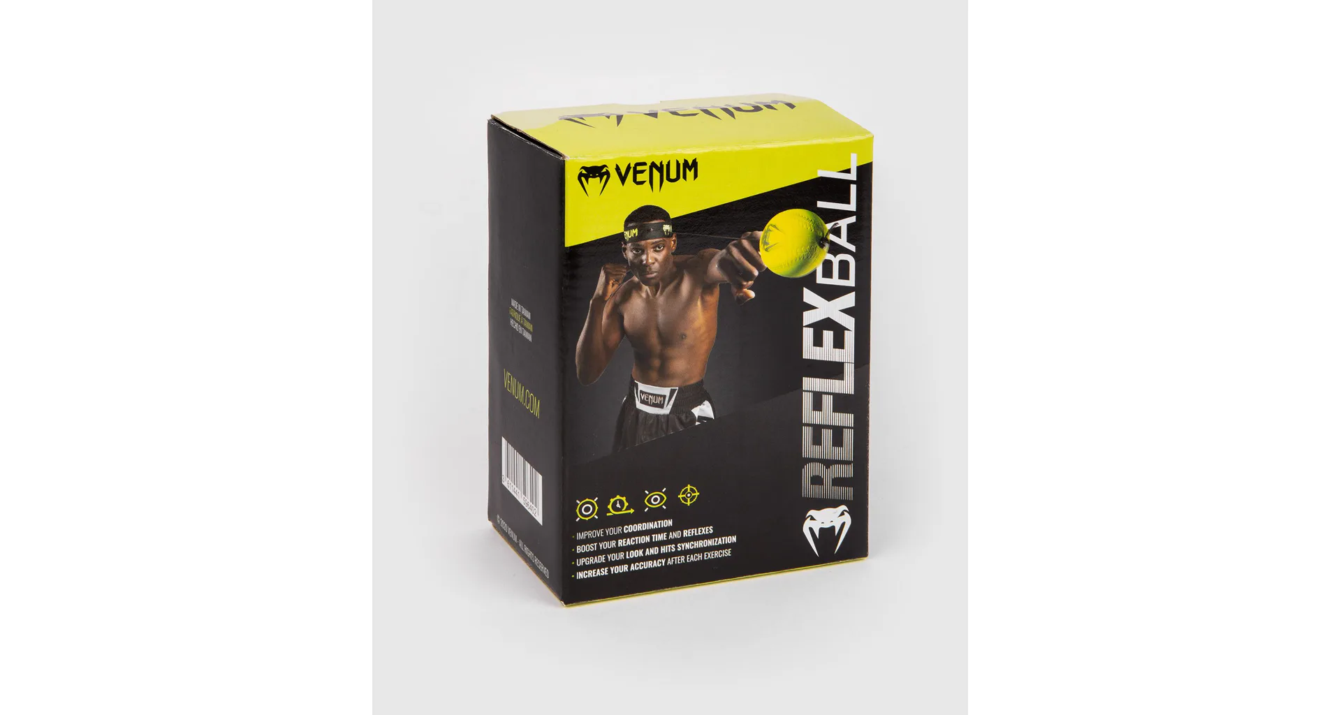 Reflexná boxovacia loptička VENUM je jednoduchá tréningová pomôcka na box, ktorá Vám pomáha zlepšovať rýchlosť reakcie, koordináciu, vytrvalosť a presnosť úderov. Súčasťou balenia je čelenka vyrobená z elastického silikónu v univerzálnej veľkosti a dve loptičky s rôznou tvrdosťou na gumičke. Čelenku jednoducho nasadíte a upravíte jej veľkosť pomocou suchého zipsu. K čelenke potom uviažete jednu z dvoch Vami zvolených loptičiek.