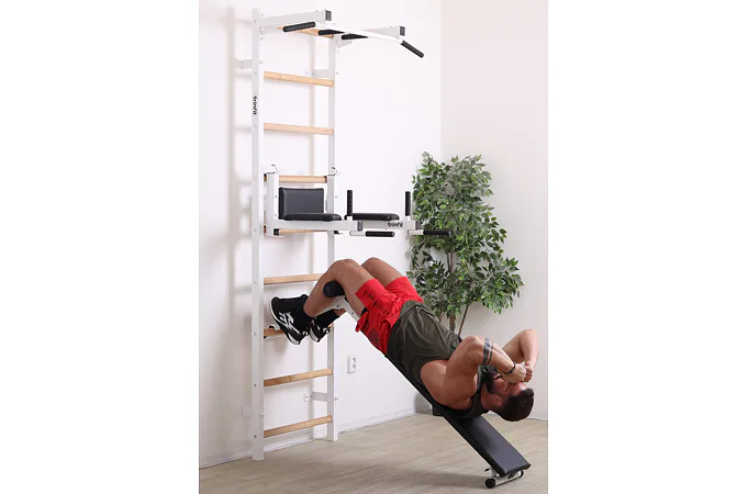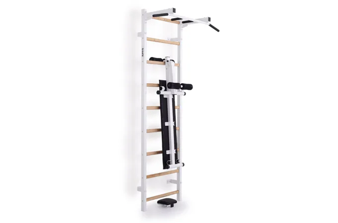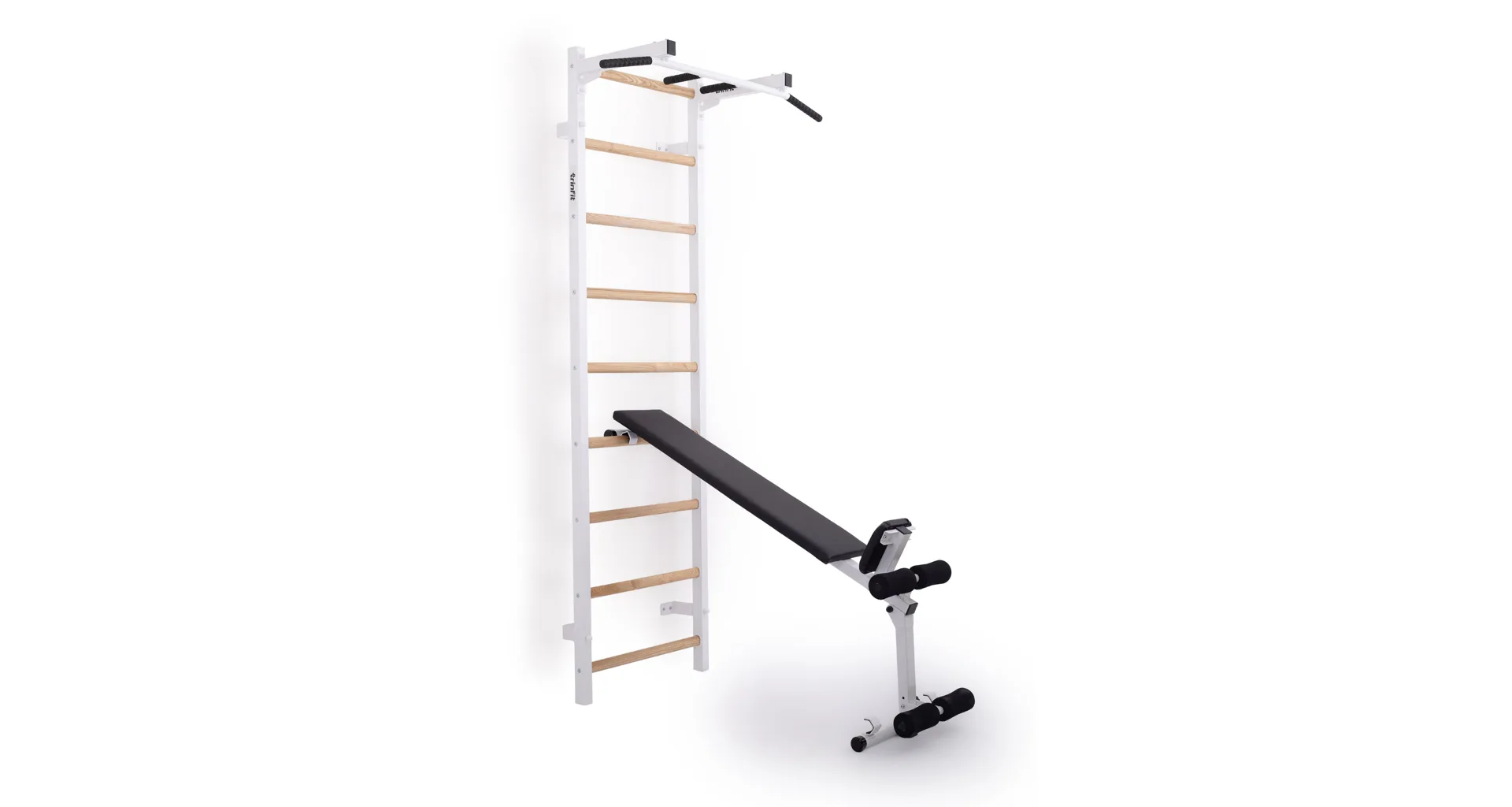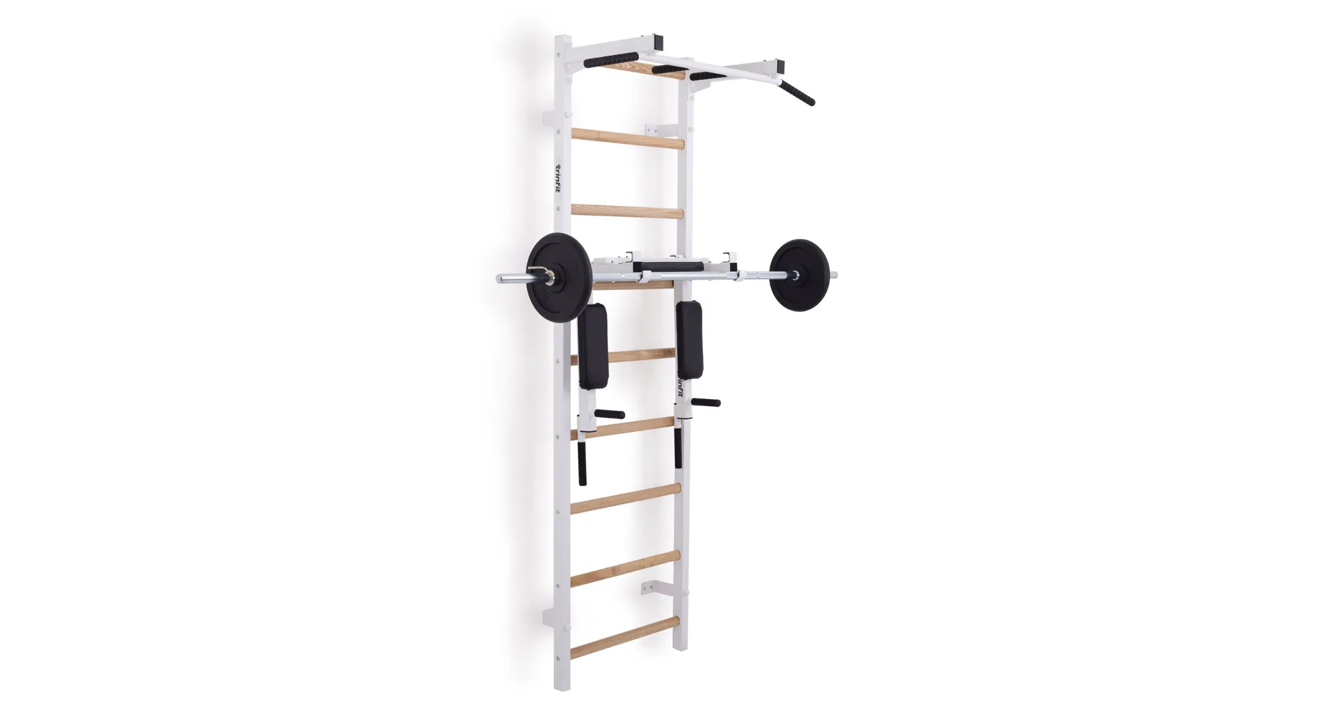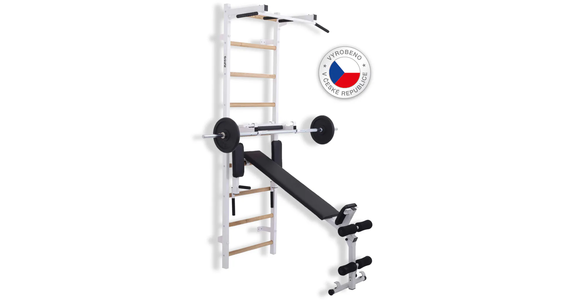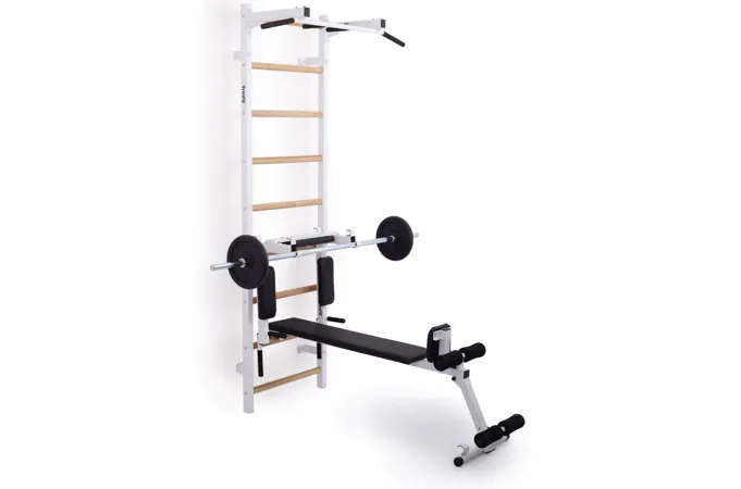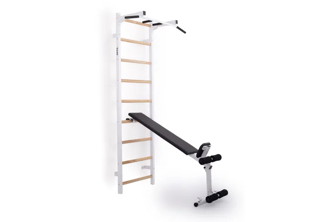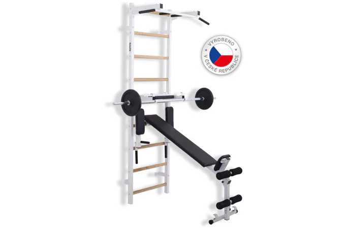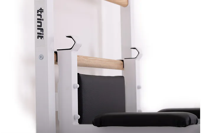 Ribstol TRINFIT Elegance s příslušenstvím je kompletní fitness set české ruční výroby, který na prostoru do 2 m² nabízí multifunkční domácí posilovnu. Kombinace pevné oceli a dřevěných jasanových příček zajišťuje dlouhou životnost, stabilitu a zdravotní nezávadnost.