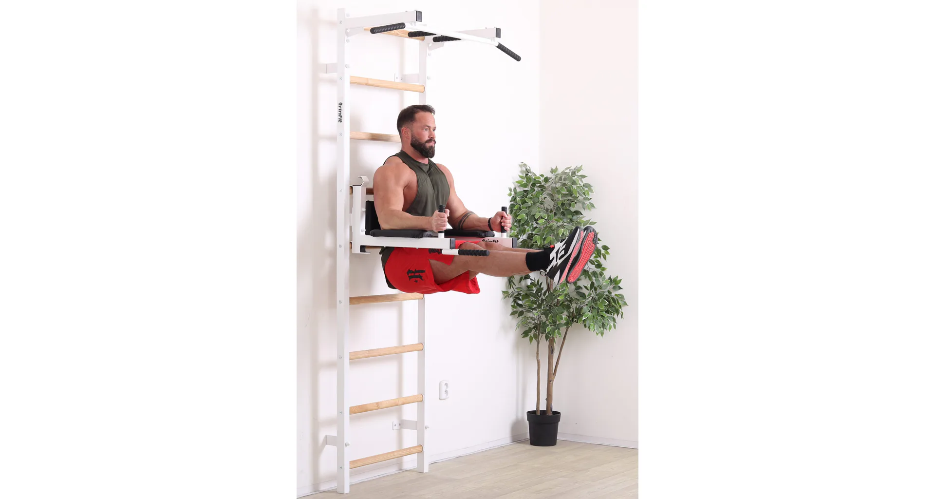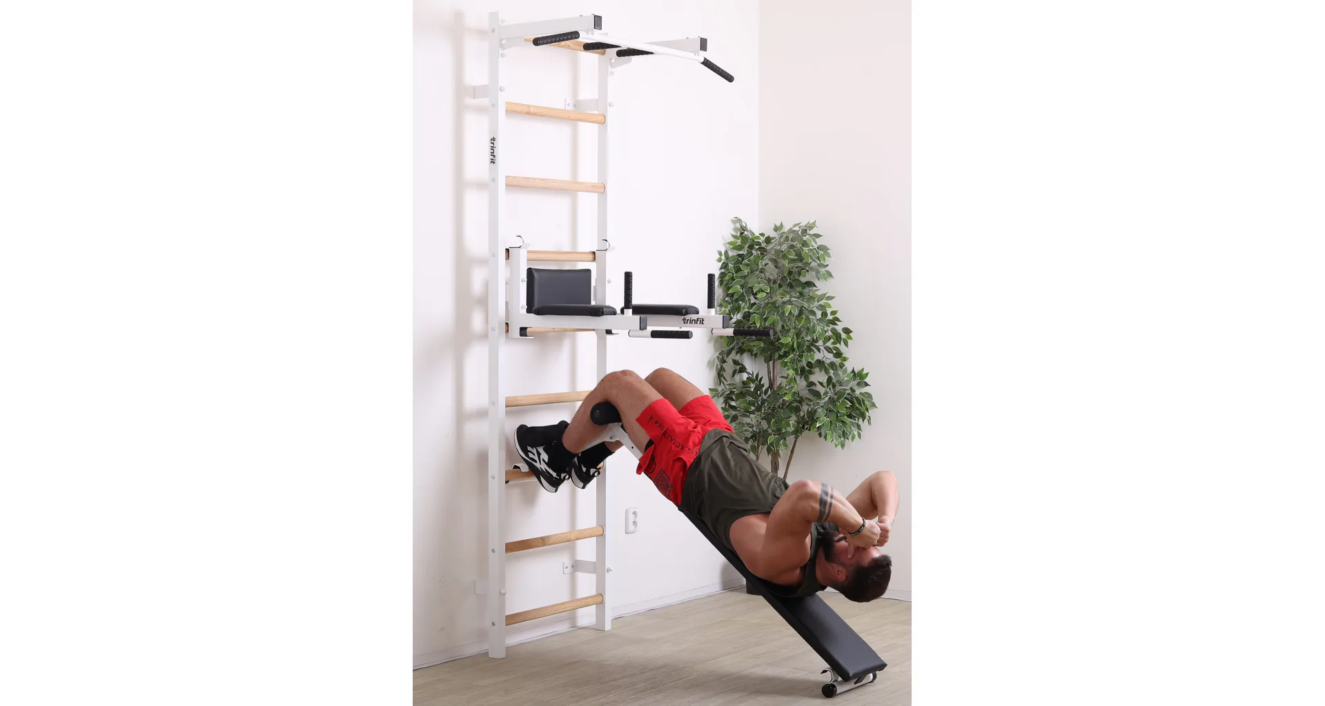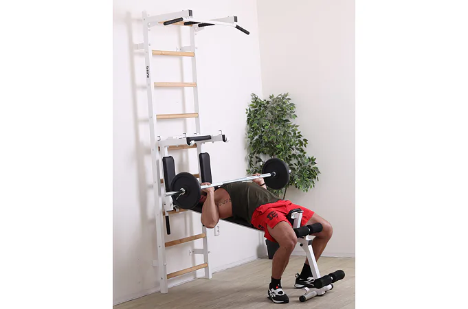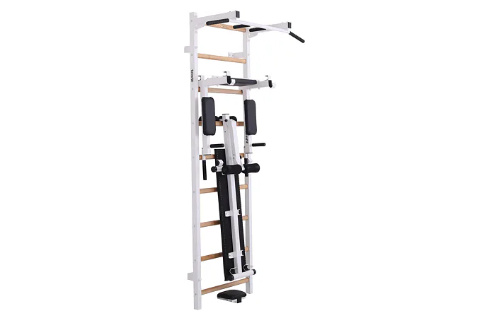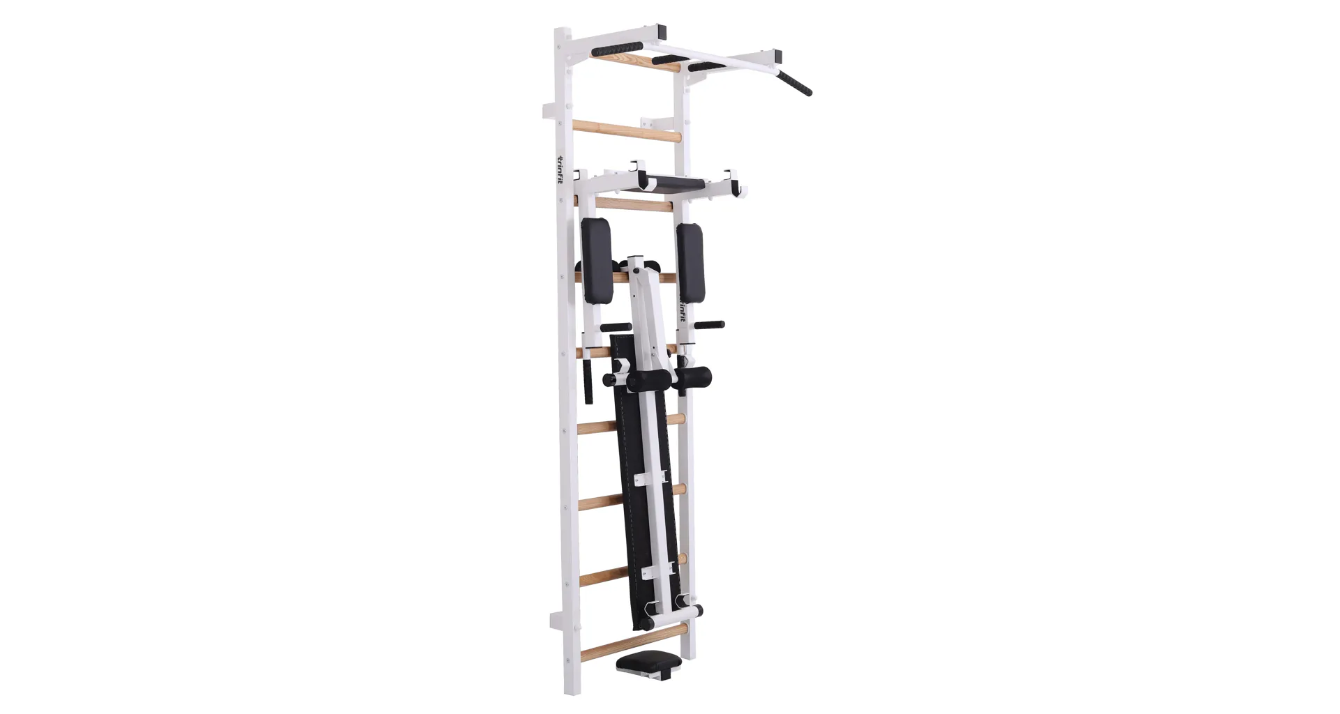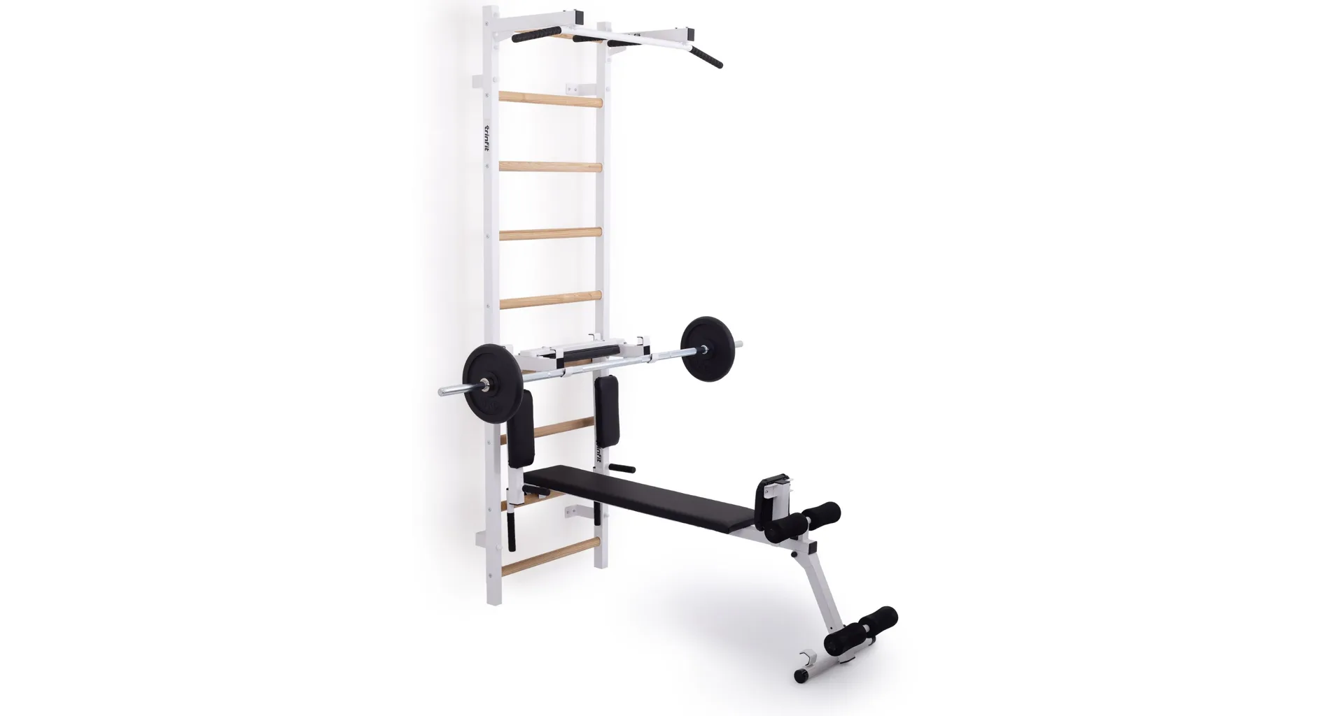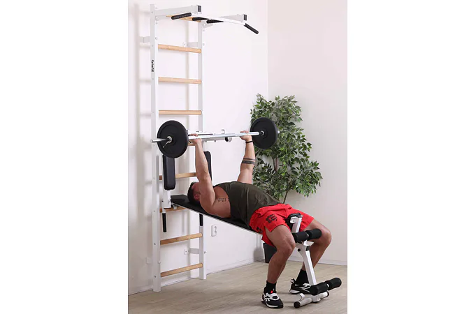 Ribstol TRINFIT Elegance s příslušenstvím je kompletní fitness set české ruční výroby, který na prostoru do 2 m² nabízí multifunkční domácí posilovnu. Kombinace pevné oceli a dřevěných jasanových příček zajišťuje dlouhou životnost, stabilitu a zdravotní nezávadnost.