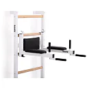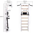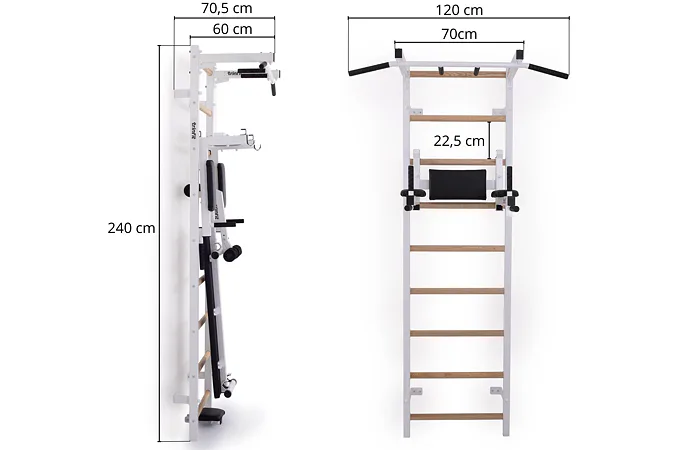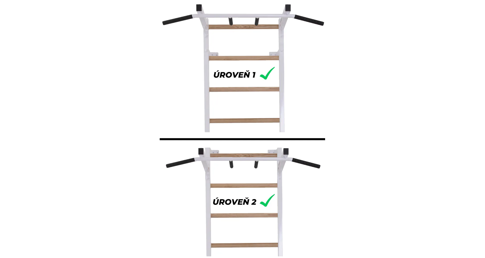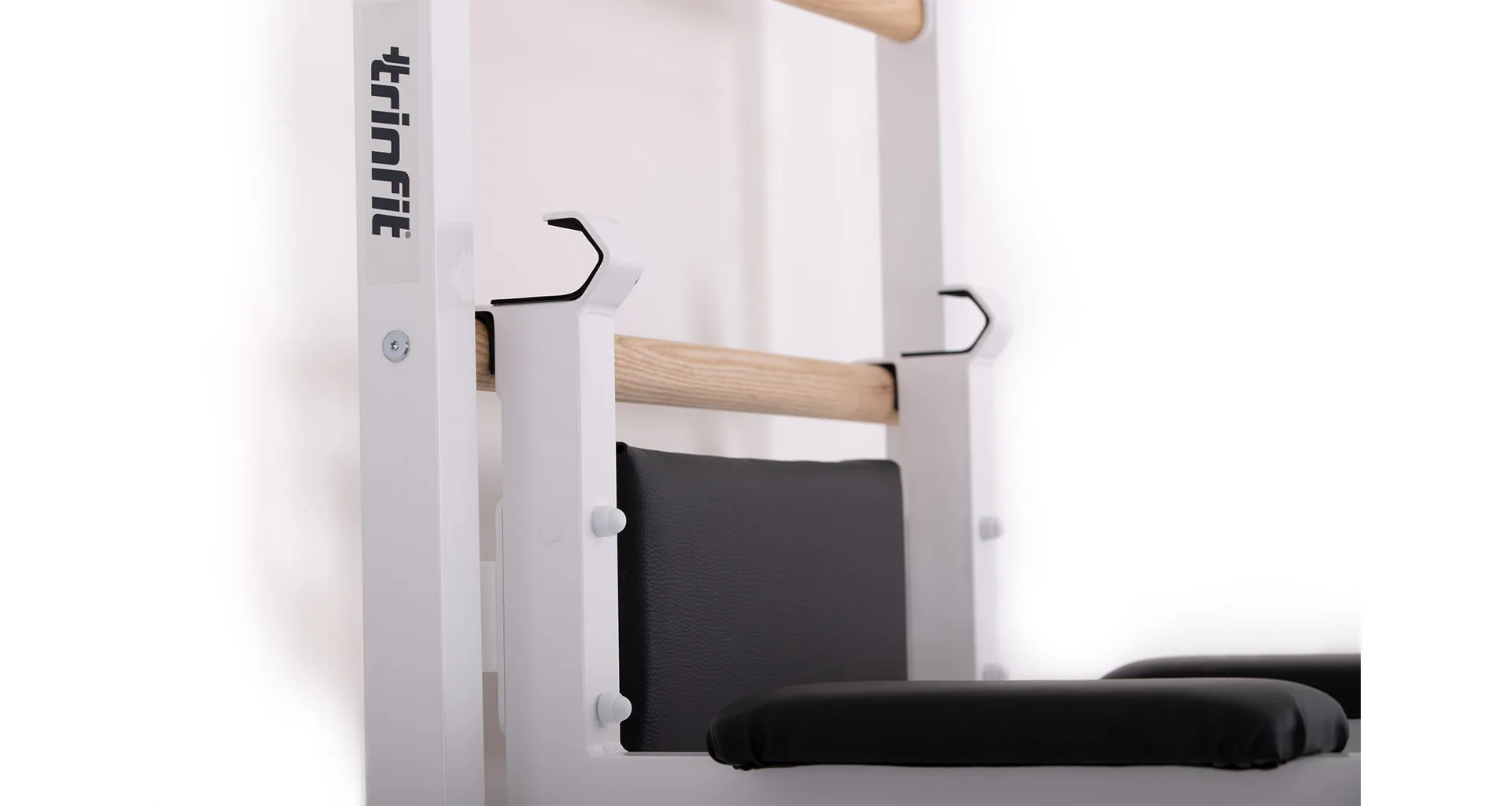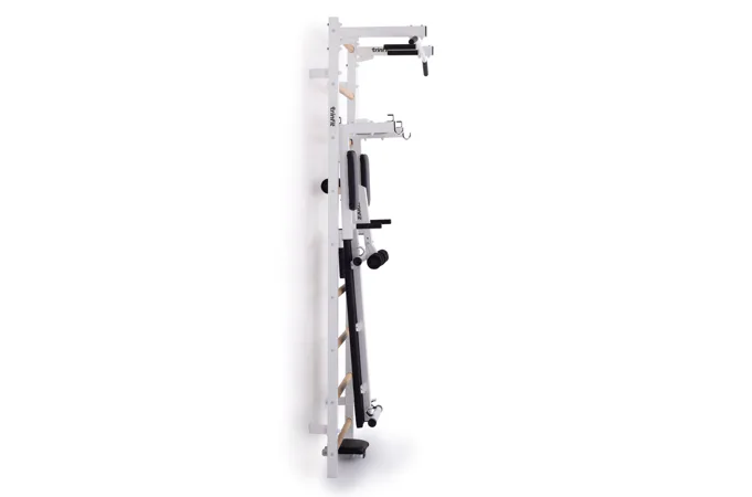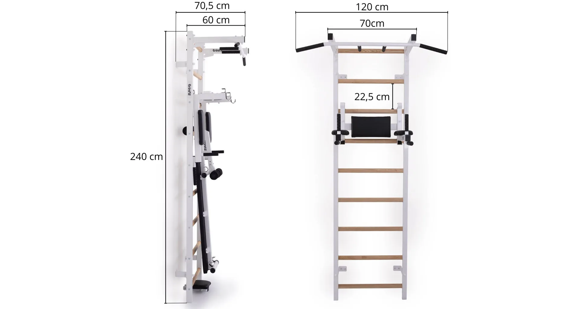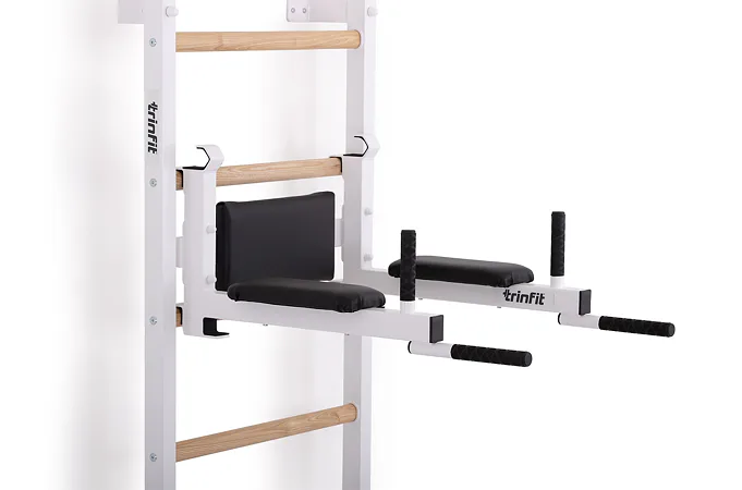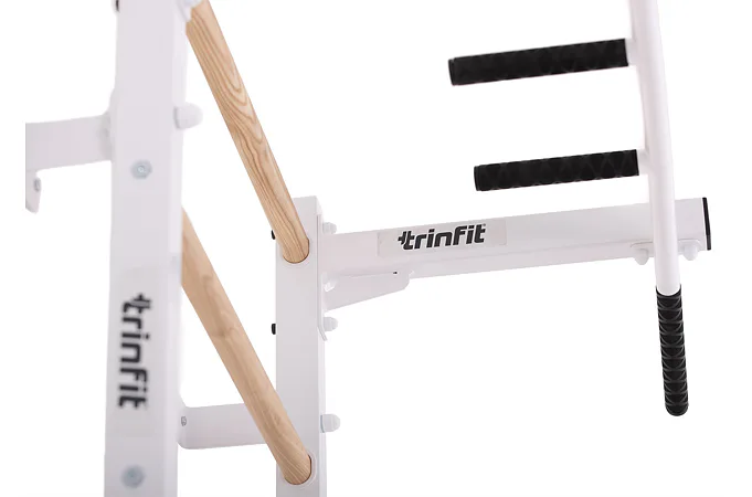 Komplet TRINFIT Elegance vyniká propracovaným designem, který přináší výhodu, jakou u konkurenčních produktů často nenajdete. Ve vrchní části ribstole jsou tři otvory – jeden pro bezpečné uchycení ribstole do zdi a dva pro snadnou montáž hrazdy TRINFIT Elegance. Díky tomu si můžete nastavit výšku hrazdy do dvou úrovní - 1. Úroveň ve výšce 228 cm a 2. úroveň pak ve výšce 215 cm. To zaručuje pohodlné cvičení pro uživatele různých výšek. Tento systém nabízí výraznou flexibilitu a přizpůsobení, které standardní ribstole s hrazdami často postrádají, a umožňuje každému dosáhnout optimální ergonomie a efektivity při tréninku.