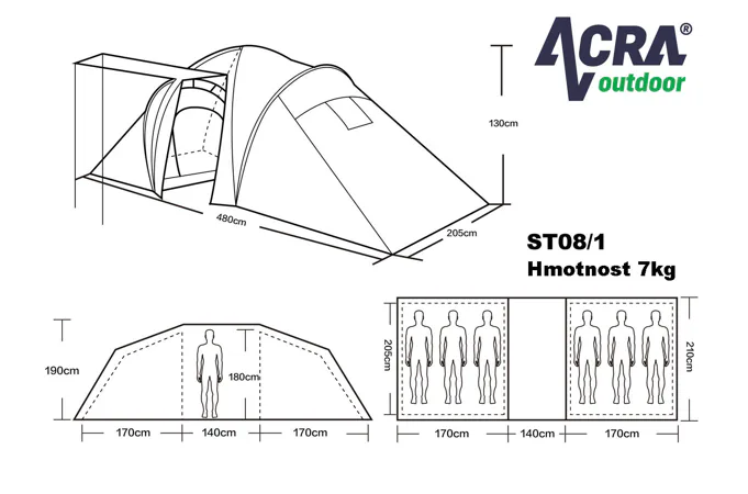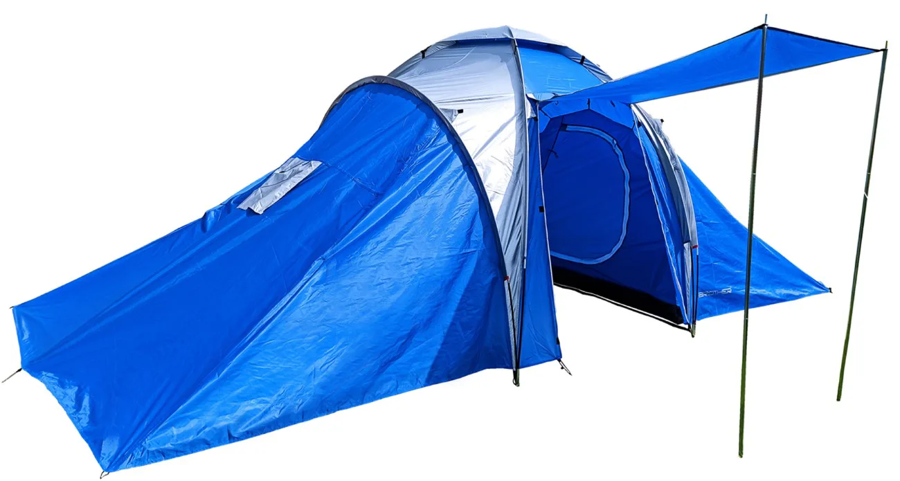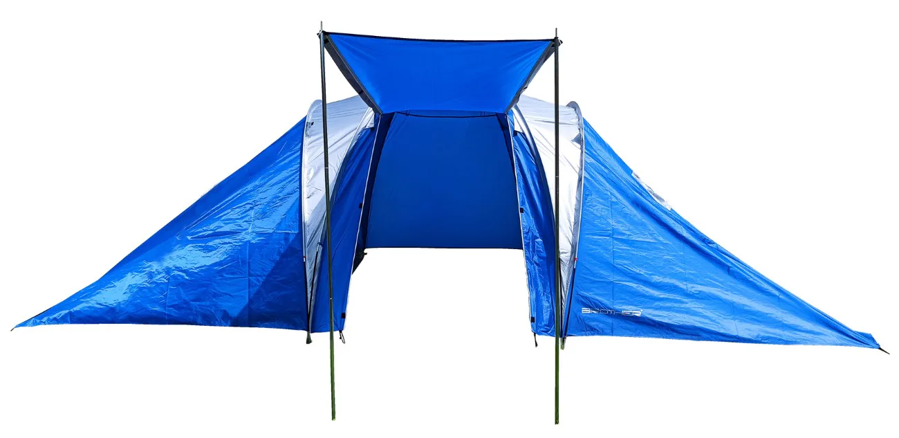 Veľký rodinný stan BROTHER ST08 až pre 6 osôb, 2 spálne + predsieň. Vhodný na príležitostné kempovanie ponúka dostatok priestoru pre väčšiu rodinu. Predsieň spolu so slnečným prístreškom vytvárajú dostatok vnútorného priestoru aj v prípade nepriaznivého počasia. Aj pri svojej veľkosti je veľmi skladný s pomocou laminátových prútov. Podlepené švy zabraňujú prieniku vody dovnútra stanu pri daždi. Stan má závesnú spálňu a vrchný plášť pretiahnutý cez laminátové nosné prúty.