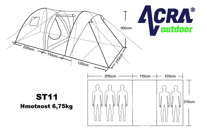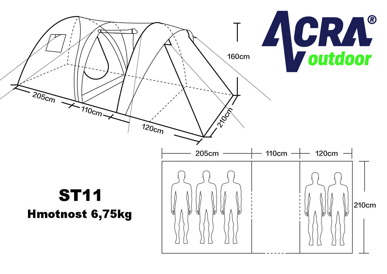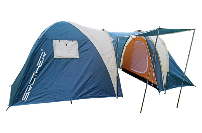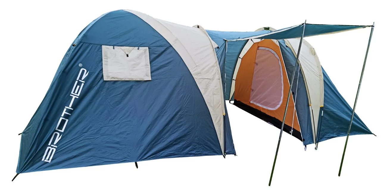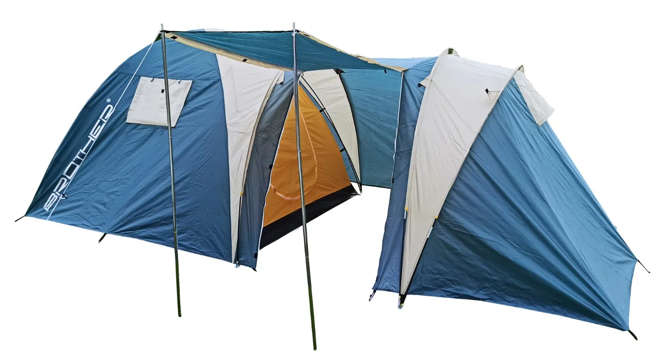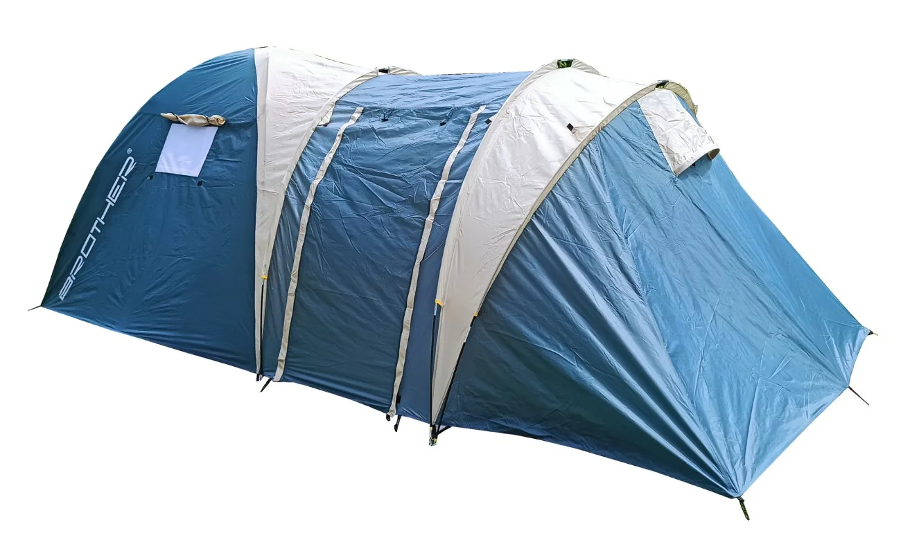 Veľký rodinný stan BROTHER ST11 pre 5 osôb vhodný na príležitostné kempovanie. Predsieň spolu so slnečným prístreškom vytvárajú dostatok vnútorného priestoru aj v prípade nepriaznivého počasia. Aj pri svojej veľkosti je veľmi skladný a s pomocou laminátových prútov postavenie nezaberie viac ako 12 minút. Podlepené švy zabraňujú prieniku vody dovnútra stanu pri daždi. Stan má závesnú spálňu a vrchný plášť pretiahnutý cez laminátové nosné prúty.