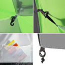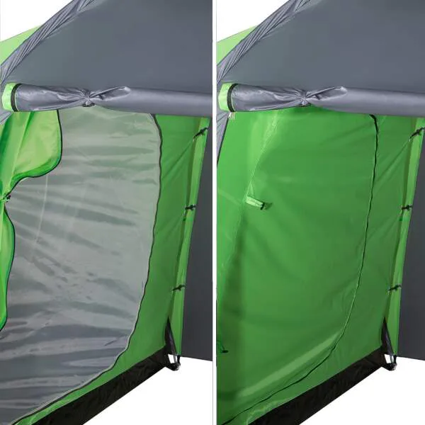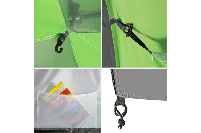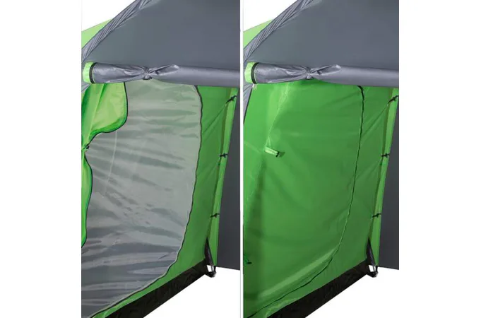 Do stanu sa vstupuje cez predsienku z oboch strán. Vchod sa otvára pomocou dvoch samostatných zipsov a otvorený panel je možné buď zrolovať a zaistiť pútkami alebo ho pomocou dodávaných prútov použiť ako striešku. Vchod do spálne je vybavený ako plachtou, tak aj moskytiérou. Vnútorný stan ďalej disponuje horným a zadným vetracím otvorom, ktoré sú tiež vybavené moskytiérami, v strede horného otvoru je navyše pútko na zavesenie svietidla. Po stranách spálne sa nachádzajú 2 vrecká na odloženie telefónu, peňaženky a pod.
