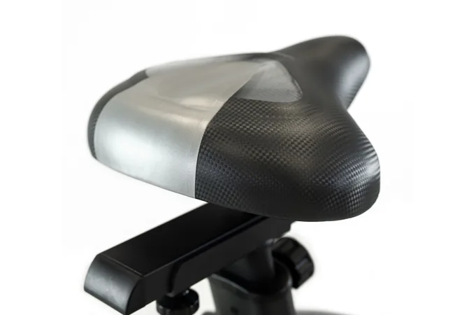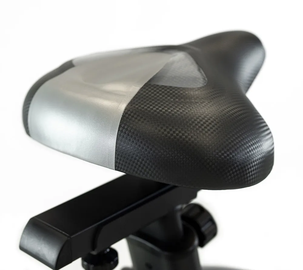 Sedlo s kvalitním polstrováním je vybaveno horizontálním i vertikálním nastavením včetně sklonu pro maximální komfort při šlapání. Rozsah nastavení sedlovky je 77 až 107 cm.