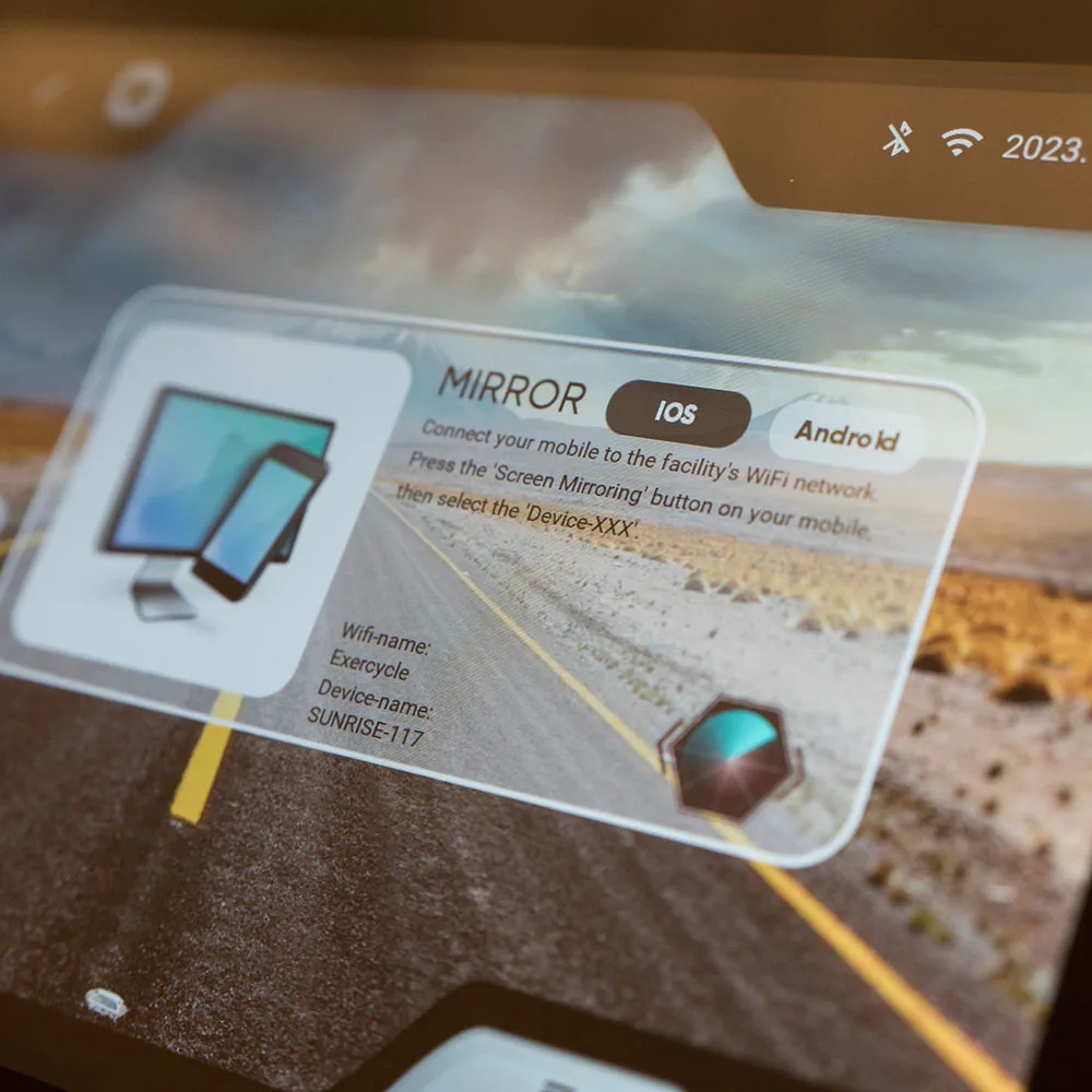 Zábavu při tréninku vám zajistí 10" počítač se SMART HD dotykovým displejem a možností připojení k internetu a využívání zabudovaných aplikací jako je Netflix, Youtube, Facebok a mnoho dalších. Vy tak můžete během tréninku sledovat váš oblíbený seriál, poslouchat oblíbenou hudbu, nebo brouzdat na sociálních sítích. V počítači naleznete také několik virtuálních tras a využít můžete také zrcadlení obrazovky z vašeho chytrého zařízení.