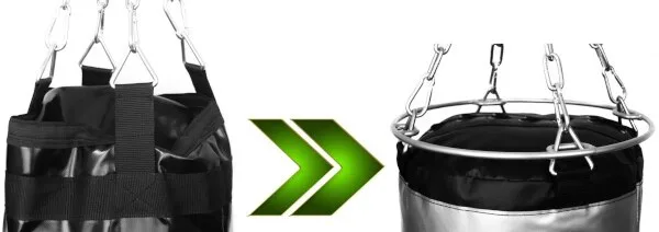 Použitie obruče na reťaze vreca zaisťuje, že si vrece po celú dobu zachováva svoj pôvodný tvar a poskytuje atraktívny vzhľad a optimálne technické parametre. Použitie obruče sa odporúča najmä v prípade, že štandardná dĺžka reťazí bude skrátená z dôvodu nízkeho tréningového priestoru (čím kratšie reťaze, tým väčší tlak reťazí na povrch vreca).