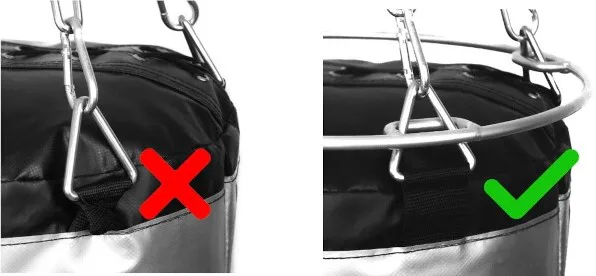 Pri tréningu na vreci často dochádza k skrúteniu nosných popruhov. Také skrútenie vedie k nerovnomernému rozloženiu hmotnosti vreca na popruhy, čo môže spôsobiť ich rýchlejšie opotrebovanie alebo roztrhnutie švov. Použitie obruče zaručuje prirodzené vyrovnanie popruhov a zabraňuje ich krúteniu počas tréningu.