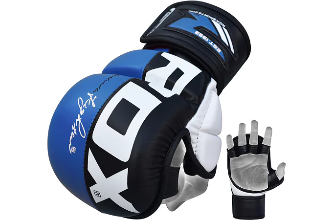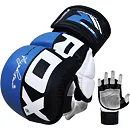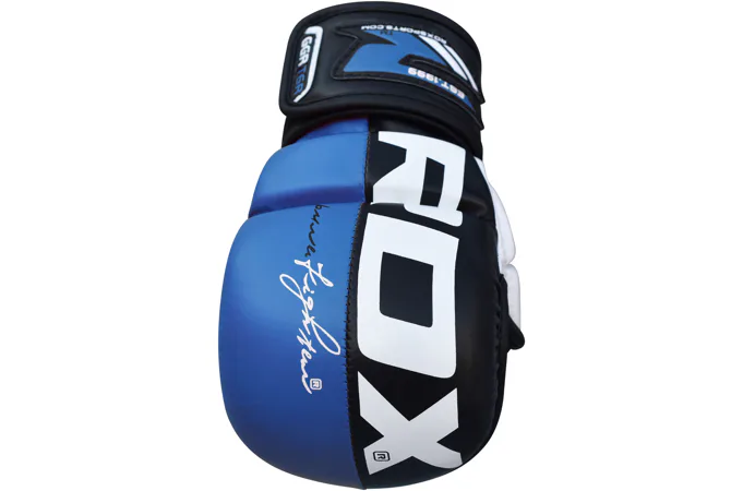 RDX Grappling Rex blue T6 sú profesionálne grapplingové rukavice schválené Švédskou federáciou zmiešaných bojových umení. Rukavice s čiastočne otvoreným palcom sú určené špeciálne pre športovcov MMA. Rukavice rukavíc s gélovou výplňou GEL EFFICAX LINING™ v modro-čiernej farbe, výborne chránia kĺby a zápästie. Skvelá priľnavosť a priedušnosť.