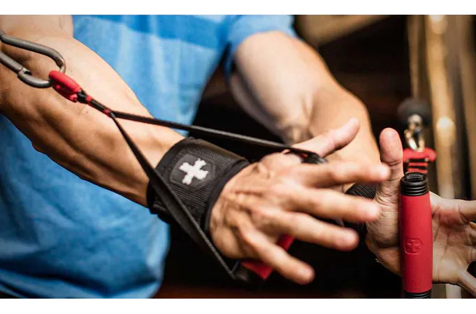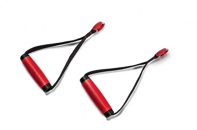 Navrhnuté pre použitie s väčšinou kladkových strojov alebo zariadení využívajúcich konektory karabíny, texturované a protišmykové rukoväte dodávajú každému tréningu rozmanitosť.