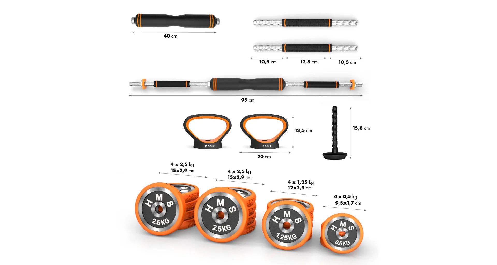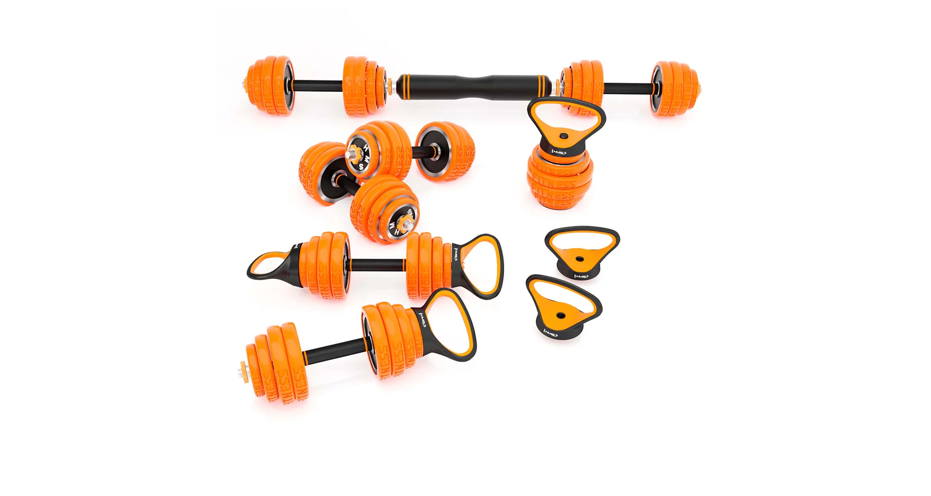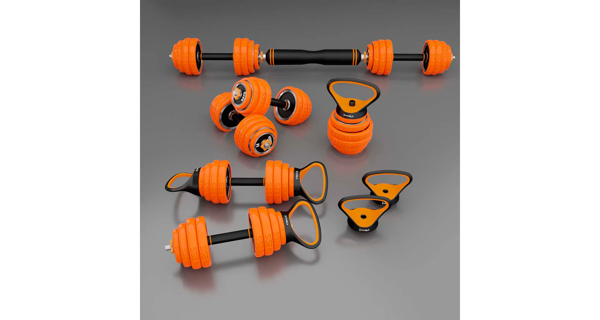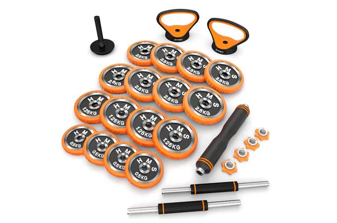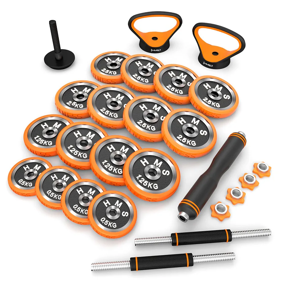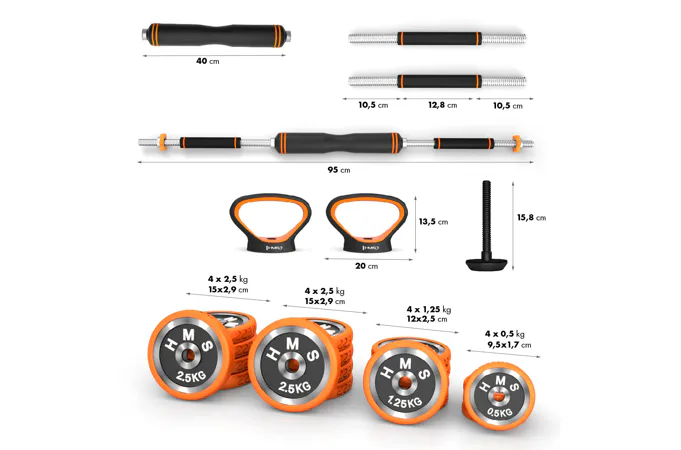 HMS SGZ230 Pro je inovatívne riešenie 6v1 pre každú domácu posilňovňu. Základný stavebný prvok tvoria 2 nakladacie jednoručné činky a sada kotúčov. Vďaka bohatému príslušenstvu možno z týchto základných činiek zostaviť obojručnú činku, kettlebell, činku s tromi držadlami, činku s bočným držadlom a podpery na kliky.