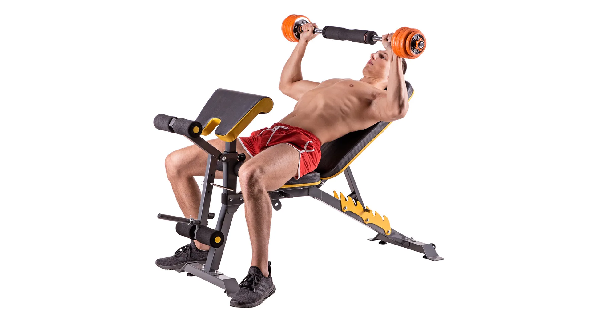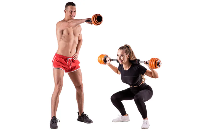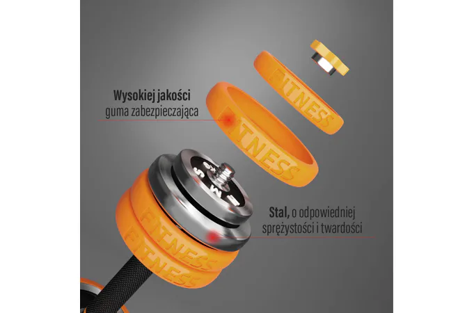 Činky sú vyrobené z vysokokvalitnej ocele a po obvode majú gumovú manžetu, ktorá chráni činku a podlahu pred poškodením a zároveň znižuje hluk pri vykladaní činky. Všetky rukoväte a držadlá sú vybavené protišmykovými materiálmi na zabezpečenie pevného úchopu. Spojovacia časť je pokrytá ergonomicky tvarovanou penou pre maximálne pohodlie počas tréningu s činkou na chrbte.