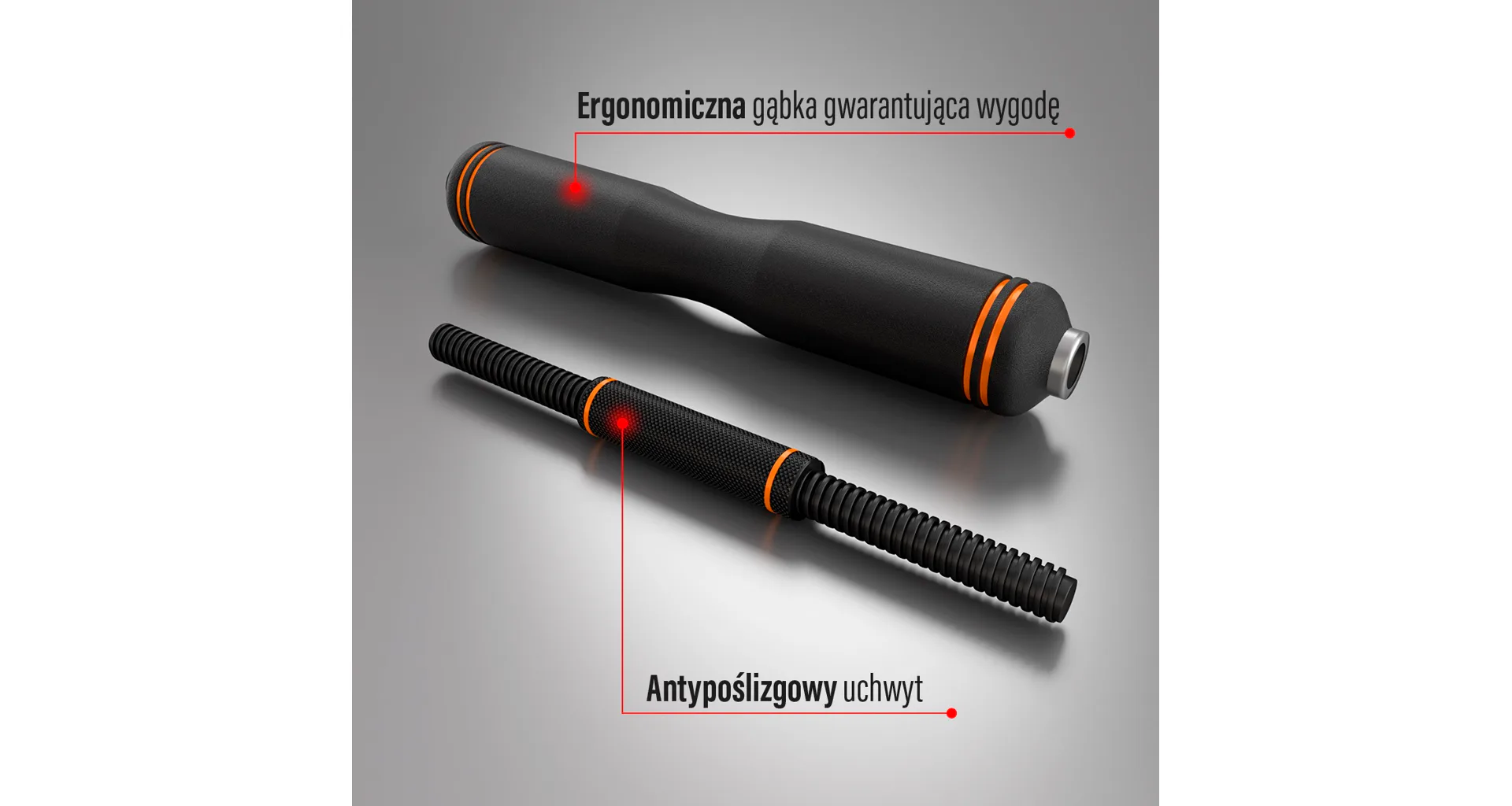 Nakladacie tyče majú vrúbkovanú rukoväť pre bezpečné uchopenie a závažia sú upevnené pomocou skrutkovacích objímok v tvare hviezdy.
