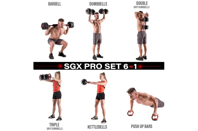SGX je jediná súprava, ktorá vďaka nespočetným možnostiam vybaví celú vašu domácu posilňovňu. Je potrebné ho mať!