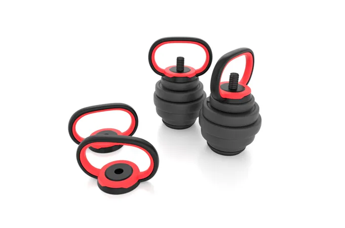 Kettlebell sa skladá z 21 centimetrov dlhého nakladacieho tŕňa, na ktorom sú naskladané kotúče požadovanej hmotnosti, ktoré sú upevnené rukoväti.
