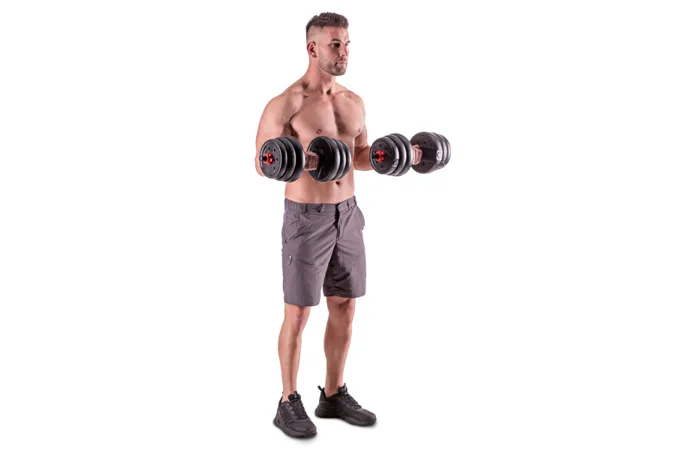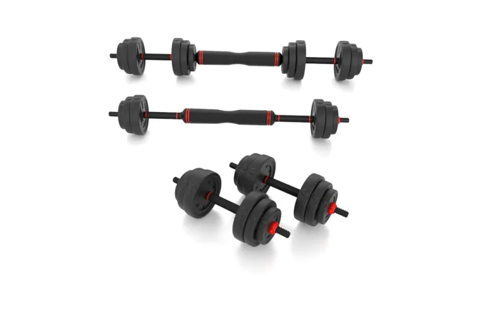 Činky sú vyrobené z vysokokvalitného a konzistentného kompozitu, ktorý je potiahnutý tvrdým plastom, aby sa zabezpečila ich trvanlivosť a odolnosť voči poškodeniu. Všetky rukoväte a držadlá sú vybavené protišmykovými materiálmi na zabezpečenie pevného úchopu. Spojovací diel je pokrytý ergonomicky tvarovanou penou pre maximálne pohodlie počas tréningu s činkou na chrbte.