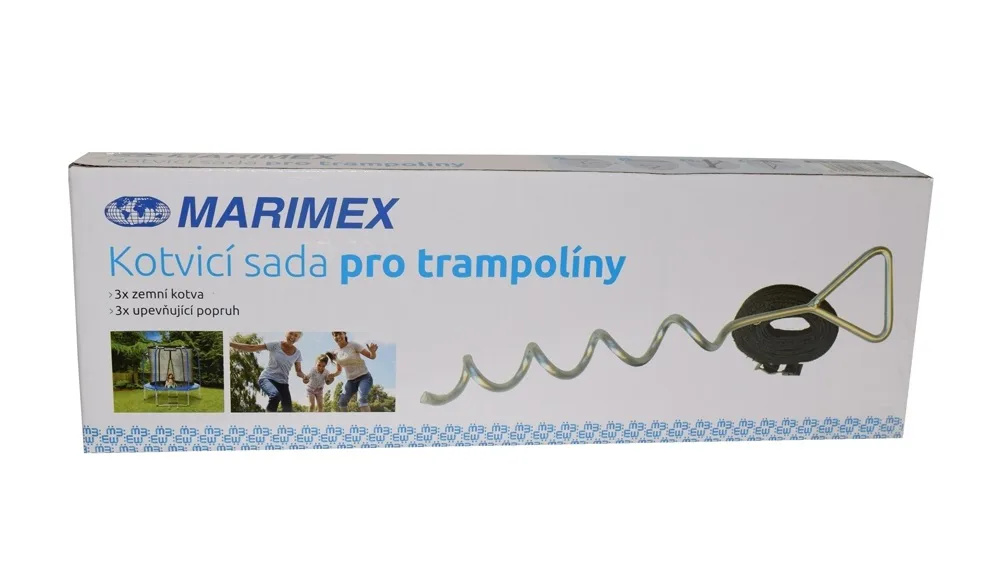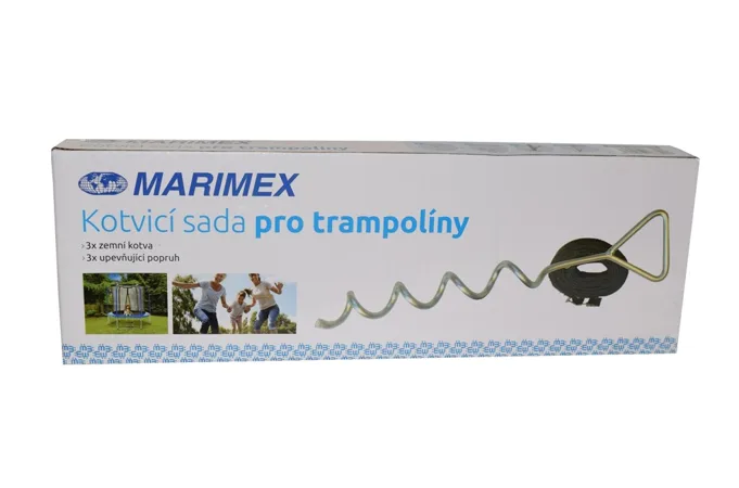 S kotviacou sadou je možné rýchlo a jednoducho pripevniť trampolínu k zemi a zaistiť tak jej dokonalú stabilitu aj pri nepriaznivom počasí. Sada sa skladá zo spojovacích pásov s oceľovými prackami a bodákov s protihrotom. Po zaistení kotviacou sadou zamedzíte pohybu aj pri silnejšom vetre. Sadu je možné použiť na spevnenie všetkých typov trampolín Marimex. Je nutné ju upevniť do spevneného podkladu.
