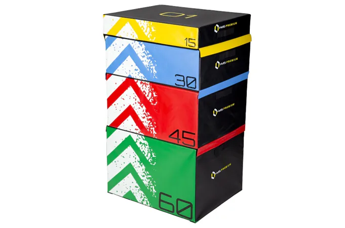 HMS Premium PYBS01 je sada štyroch mäkkých plyometrických skríň o rôznej výške. Plyometrikcý box je nutnou výbavou každého fitness centra a posilňovne. Uplatnenie nájde počas takmer každého crossfitového tréningu, ale aj pri kondičnom tréningu a alebo ak potrebujete pracovať na rozvoji mobility.