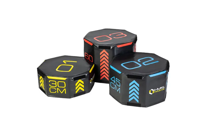 HMS Premium PYOBS01 je sada troch mäkkých, šesťhranných plyometrických skríň o rôznej výške. Plyometrikcý box je nutnou výbavou každého fitness centra a posilňovne. Uplatnenie nájde počas takmer každého crossfitového tréningu, ale aj pri kondičnom tréningu a alebo ak potrebujete pracovať na rozvoji mobility.